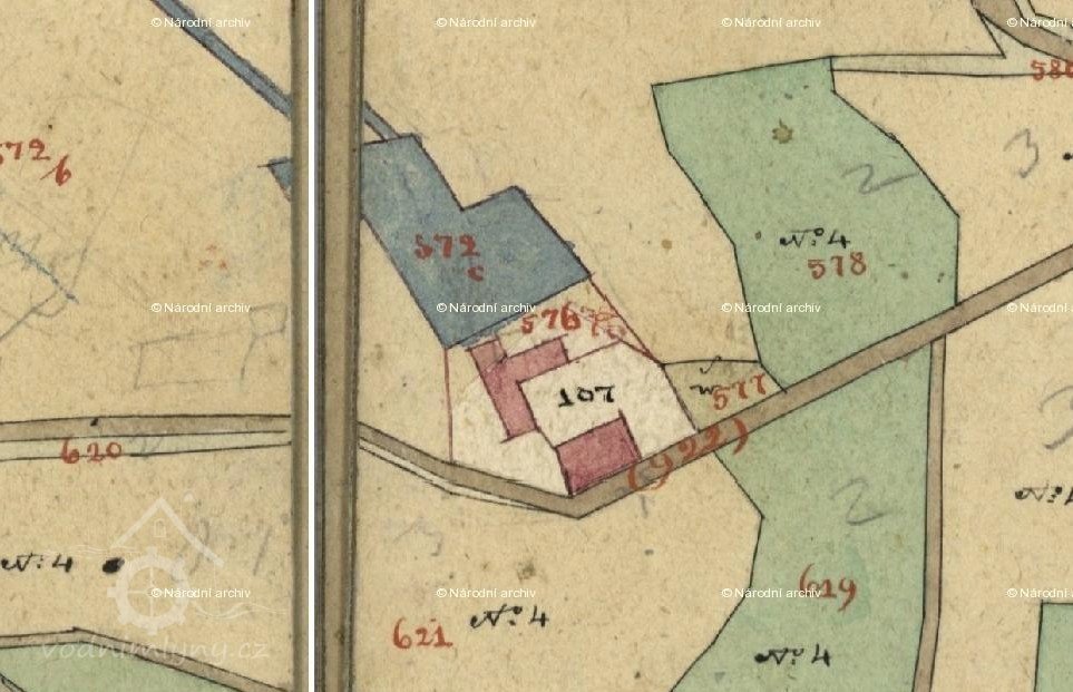 Mlýn je provizorně zakreslen jen na skice k císařskému otisku.