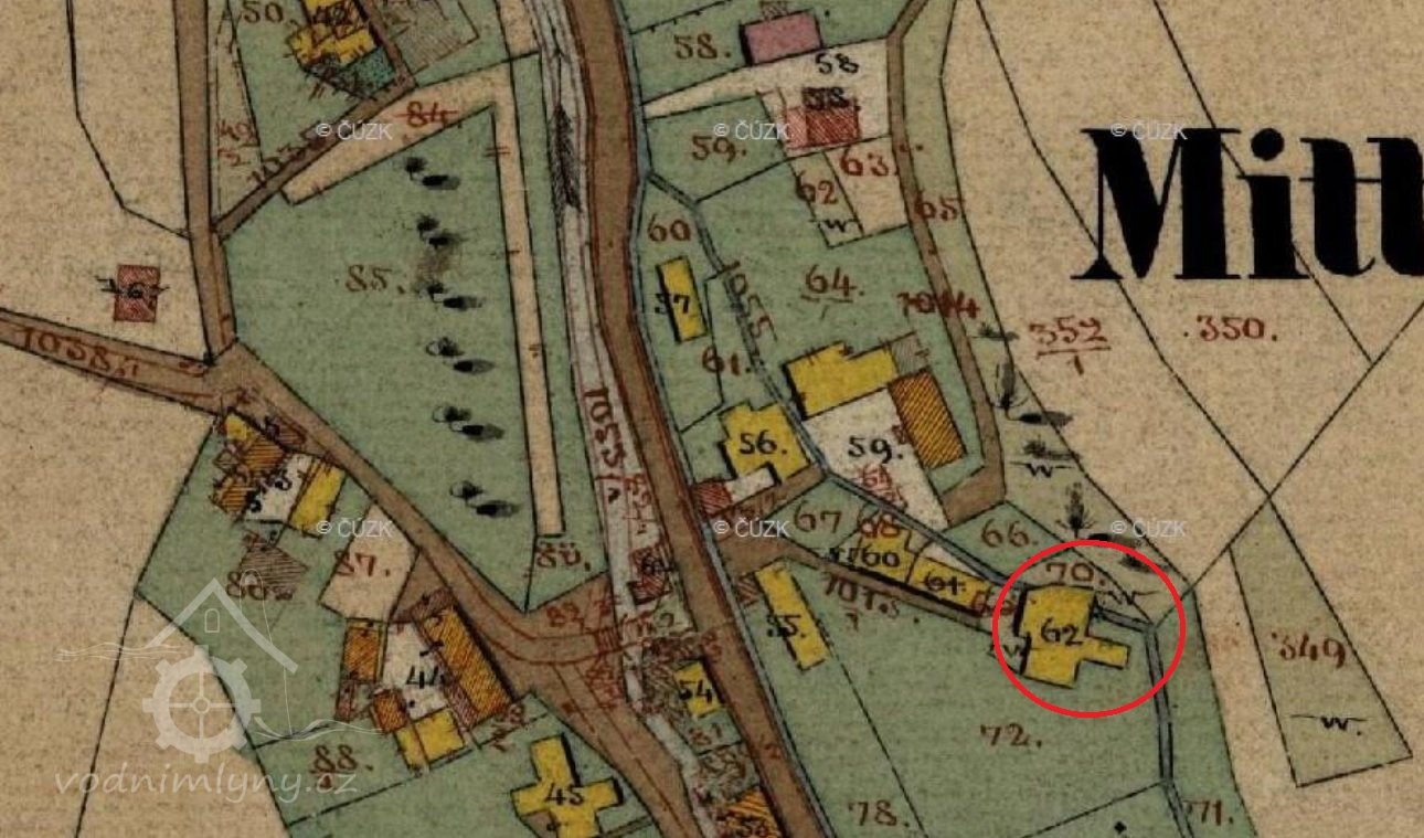 Mlýn je zakreslen již na mapě I. voj. mapování.