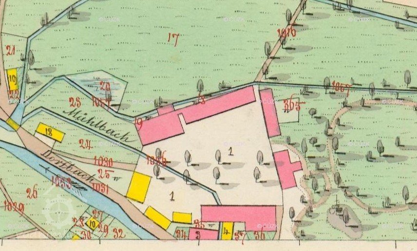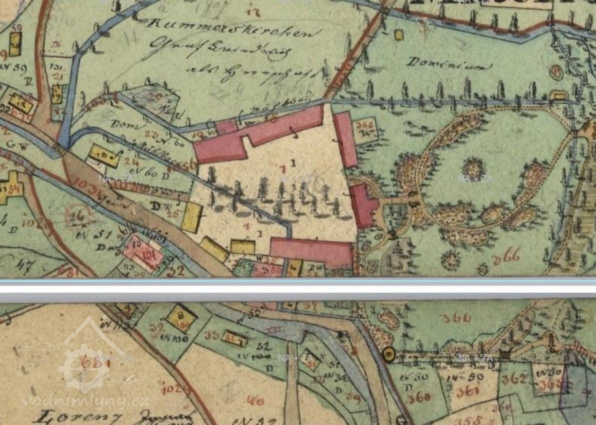 Vodní kniha uvádí posloupnost majitelů: hrabě Friedrich Rummerkirsch, v r. 1906 hrabě Corinský, hrabě Hardegg, Alexander a Mathilde Croy.