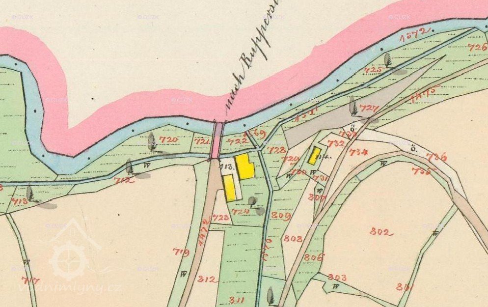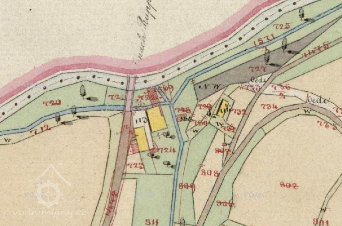 PopisV r. 1930 bylo k pohonu mlýna 1 kolo na svrchní vodu, průtok 0,265 m3/s, spád 3 m, výkon 6,88 k.