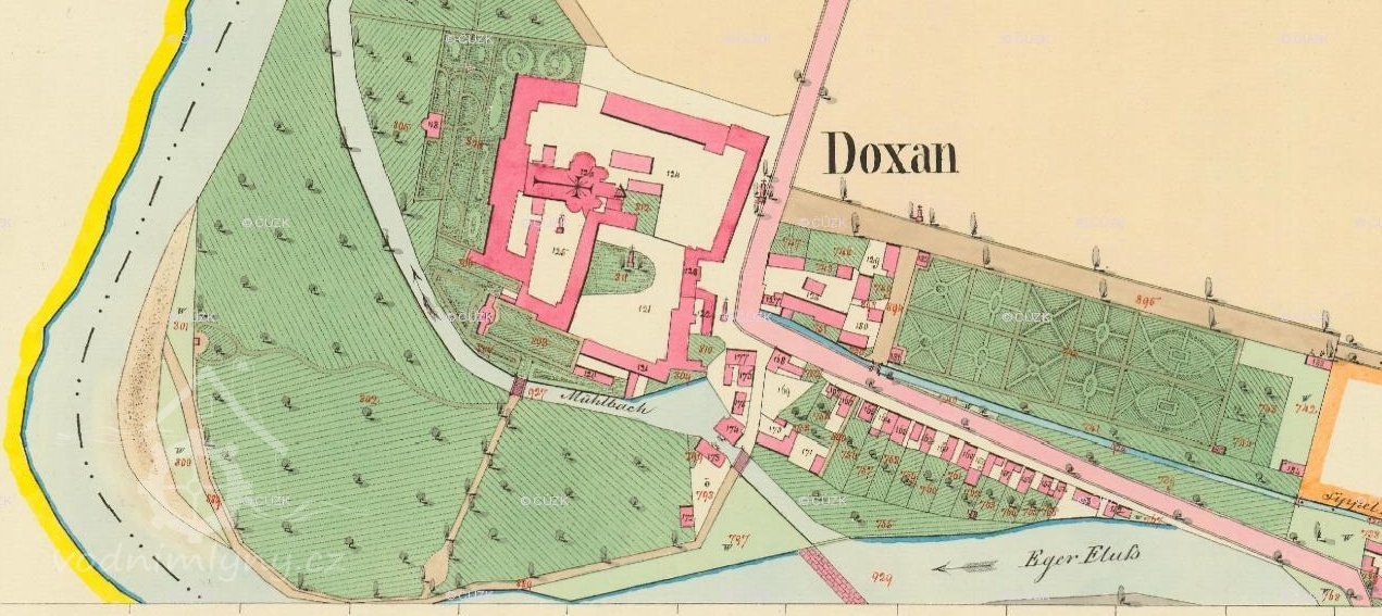 Doksany o nároku na vodu. Soudní jední trvalo 80 let. Zajímavé je, že zařízení mlýnice se používalo beze změn až do konce 18. století.