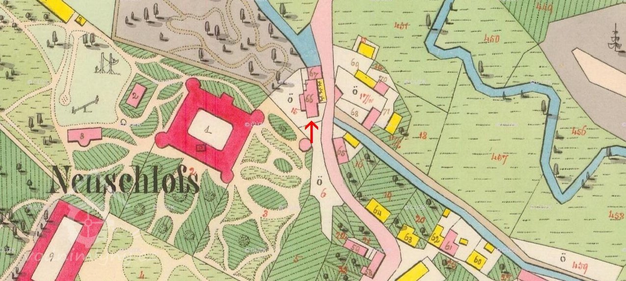 V rámci areálu byla i zámecká vodárna. Zbořena 1975 (RŠ)