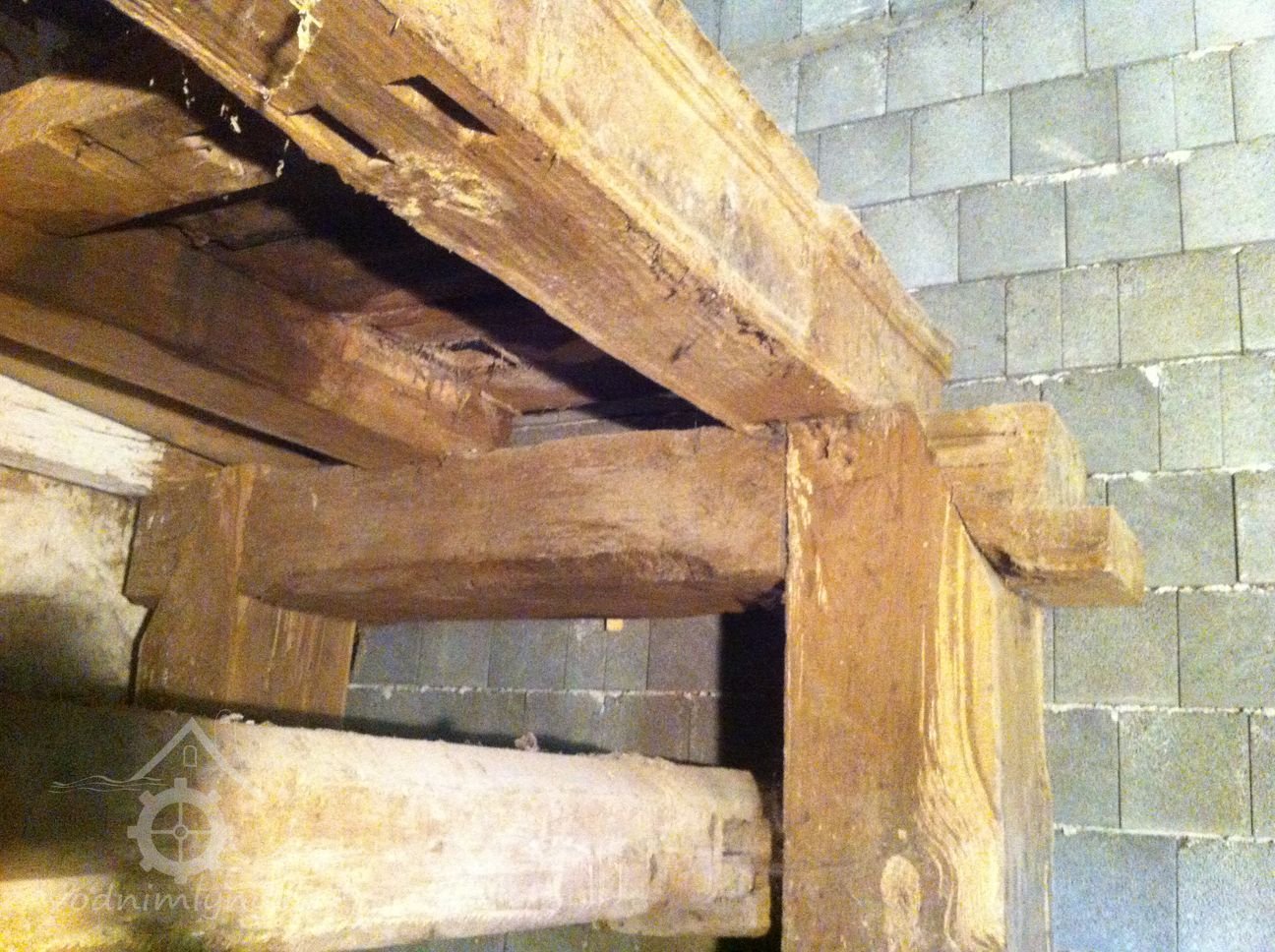 Bylo zde celodřevěné vodní kolo na vrchní vodu.