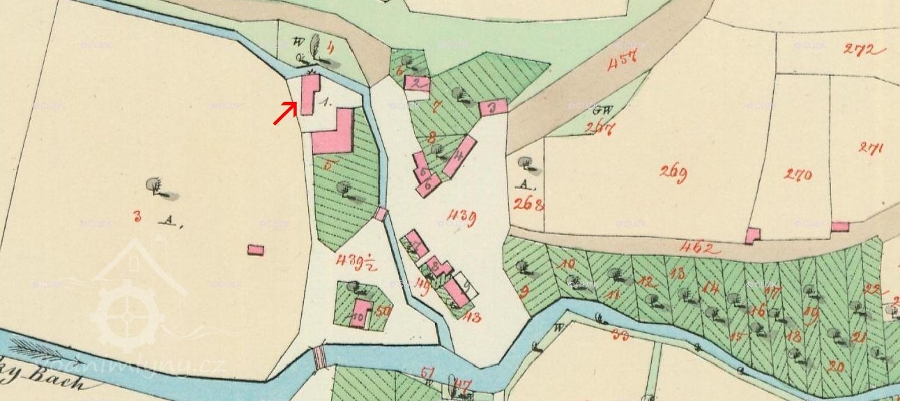 1908 majitel Marie Volgnerová, osazena vodní značka MV 1908