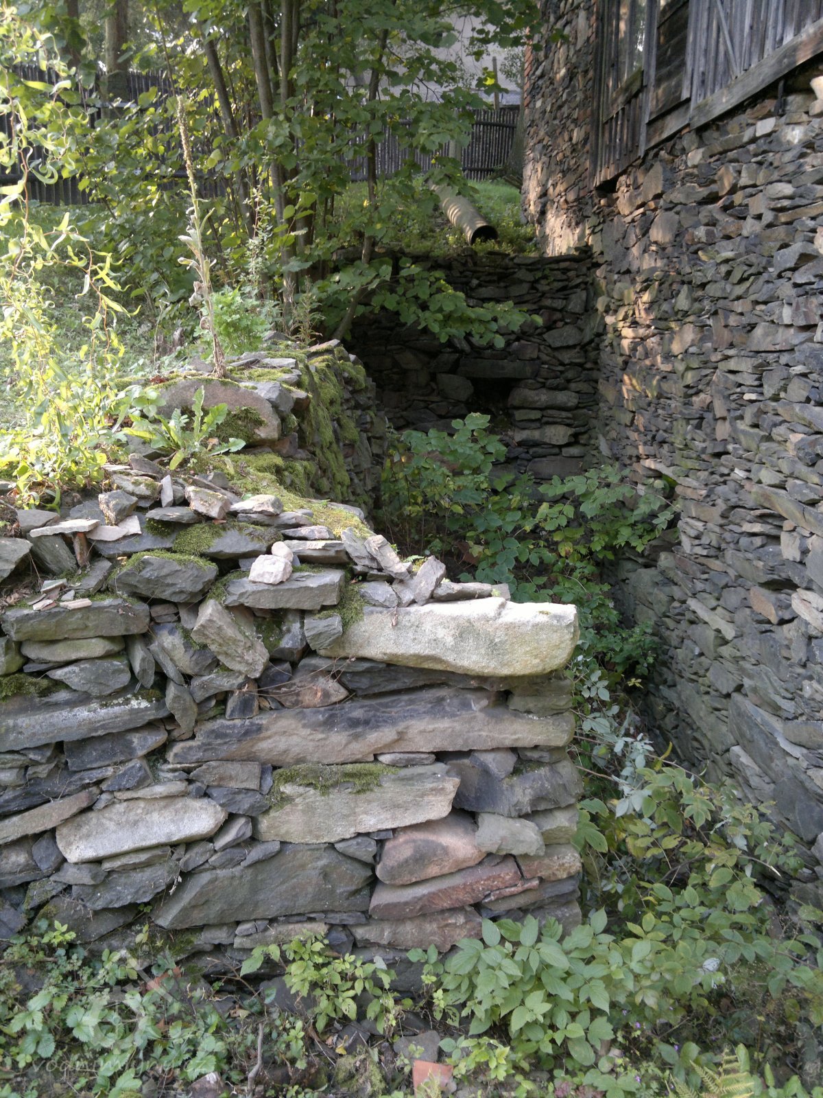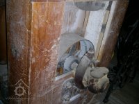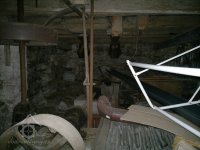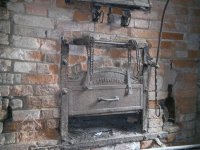 Dochovaná chlebová pec a elektrický motor, původně napojen na spodní transmisi.