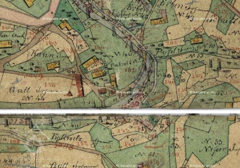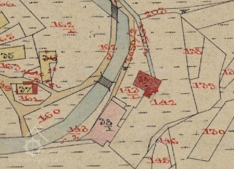 Mlýn vznikl po r. 1841, je zakreslený jen na skice k císařskému otisku. Jeho původní č. p. bylo 50.