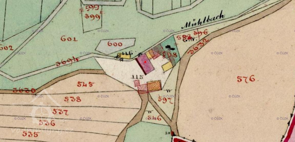 O mlýnu je zmínka již v r. 1713, měl v té době dvě kola, maj. Adam Glosauer (Glasauer)