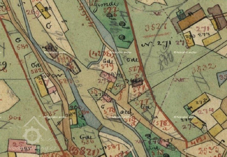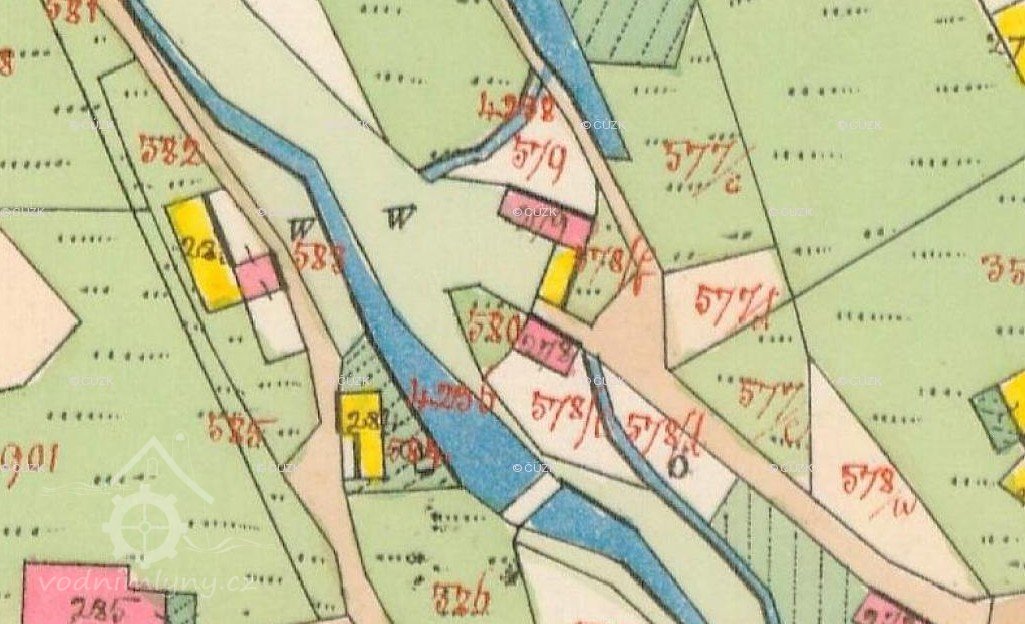 PopisV r. 1930 zde bylo 1 kolo na svrchní vodu, průtok 0,079 m3/s, spád 5,85 m, výkon 4 k.