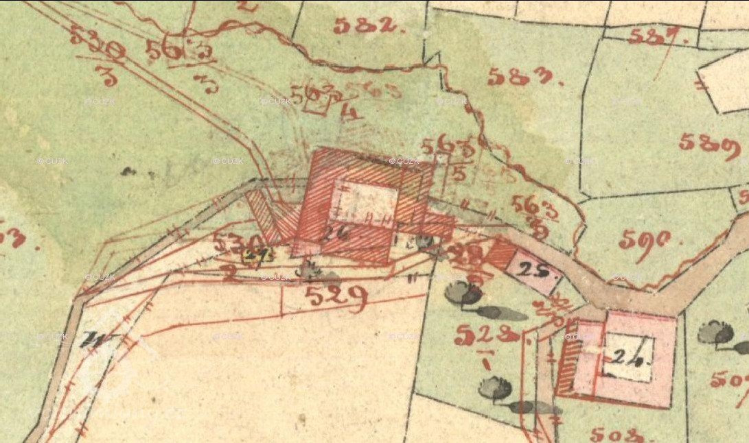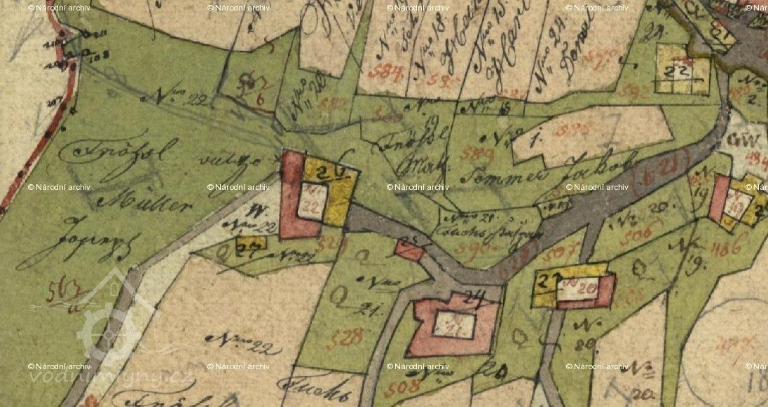V r. 1826 je uveden majitel Joseph Frössl, v r. 1930 Jan Herzog, mlýn a pila. Původní č. p. bylo 22.
