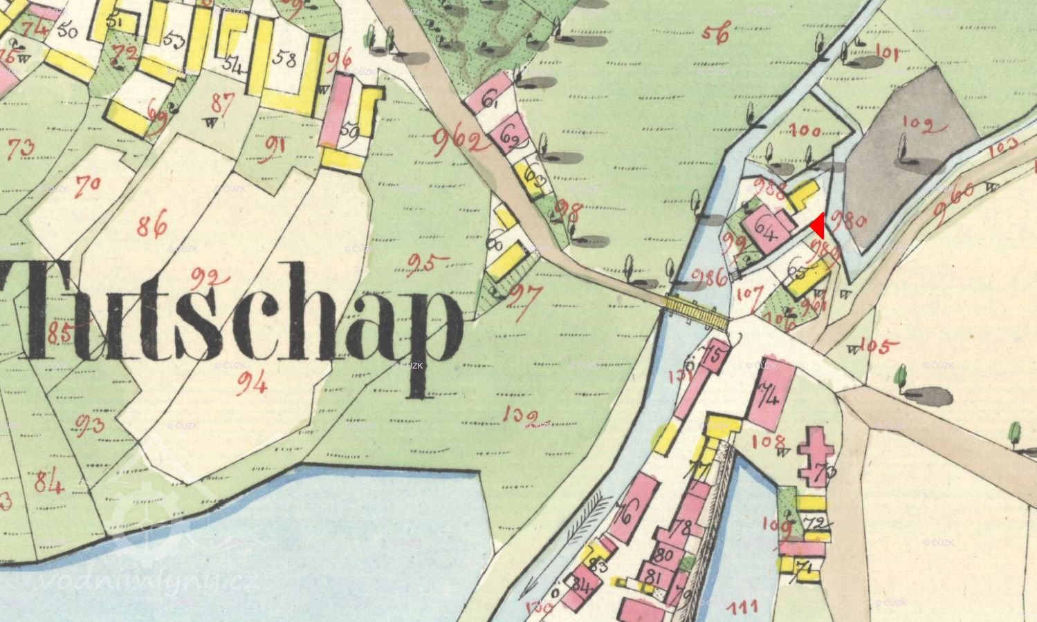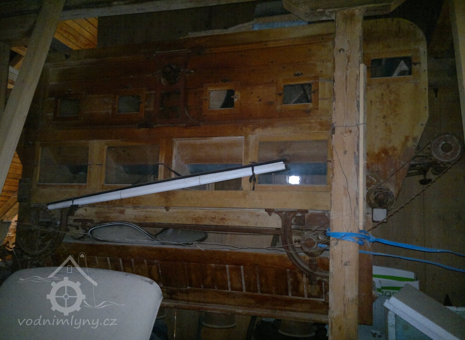 - vodní kolo o průměru 4,2 m, šířce 58 cm, radiální hloubka 0,32 m, 8 otáček/min., množství vody, které kolo pojme 36 litrů/s. Voda se přivádí vantroky a protéká stavidlem o šířce 1,1 m. Užitečný spád 4,6 m, max. množství vody 390 l/s, výkonost 18 HP. Kolaudace provedena a změny jsou obsaženy v kolaudačním nálezu z 26.10.1932 (Nález ani jakékoliv dokumenty NEJSOU ve vložce Vodní knihy p.č.57 uloženy).