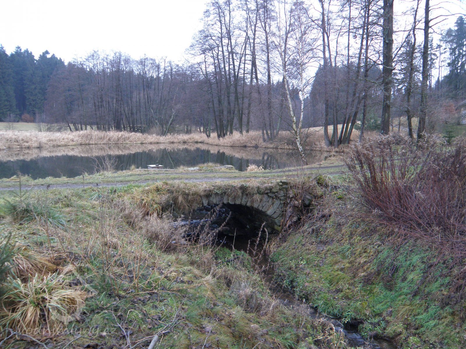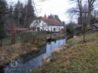 Při potoce podle historických pramenů stával havířský domek později přestavěný na mlýn o jednom složení, který sloužil jako drtírna Karlovy Huti a nakonec jako Bouchnerova brusírna (1931), dnes U STUPNÍKU. Brusírna poháněná vodním dílem na Smrčenském potoce fungovala ještě po 2. světové válce. Nedostatek vody zde byl řešen používáním parního stroje.