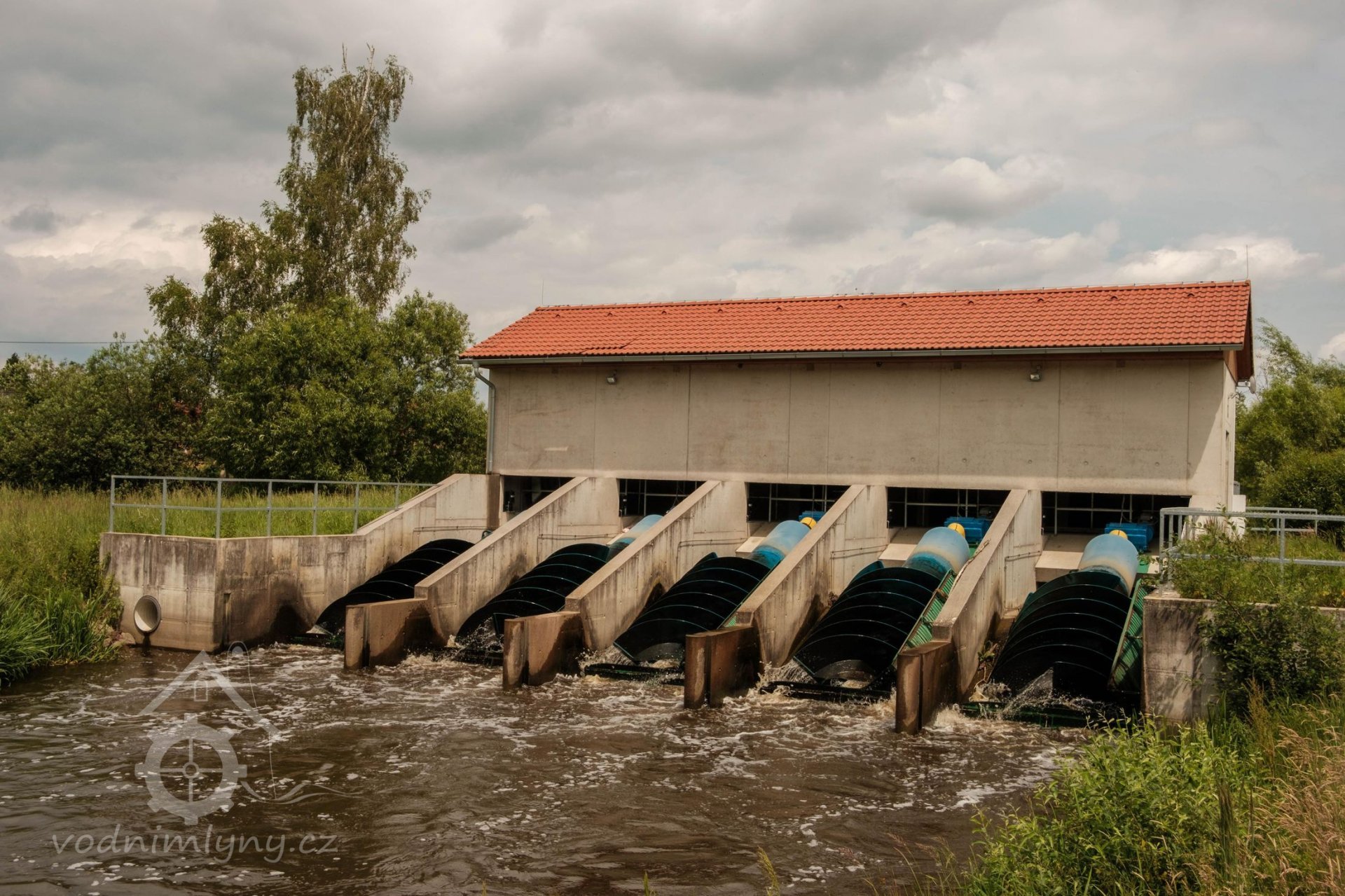 Mlýn s turbínou, který vyrábí elektřinu