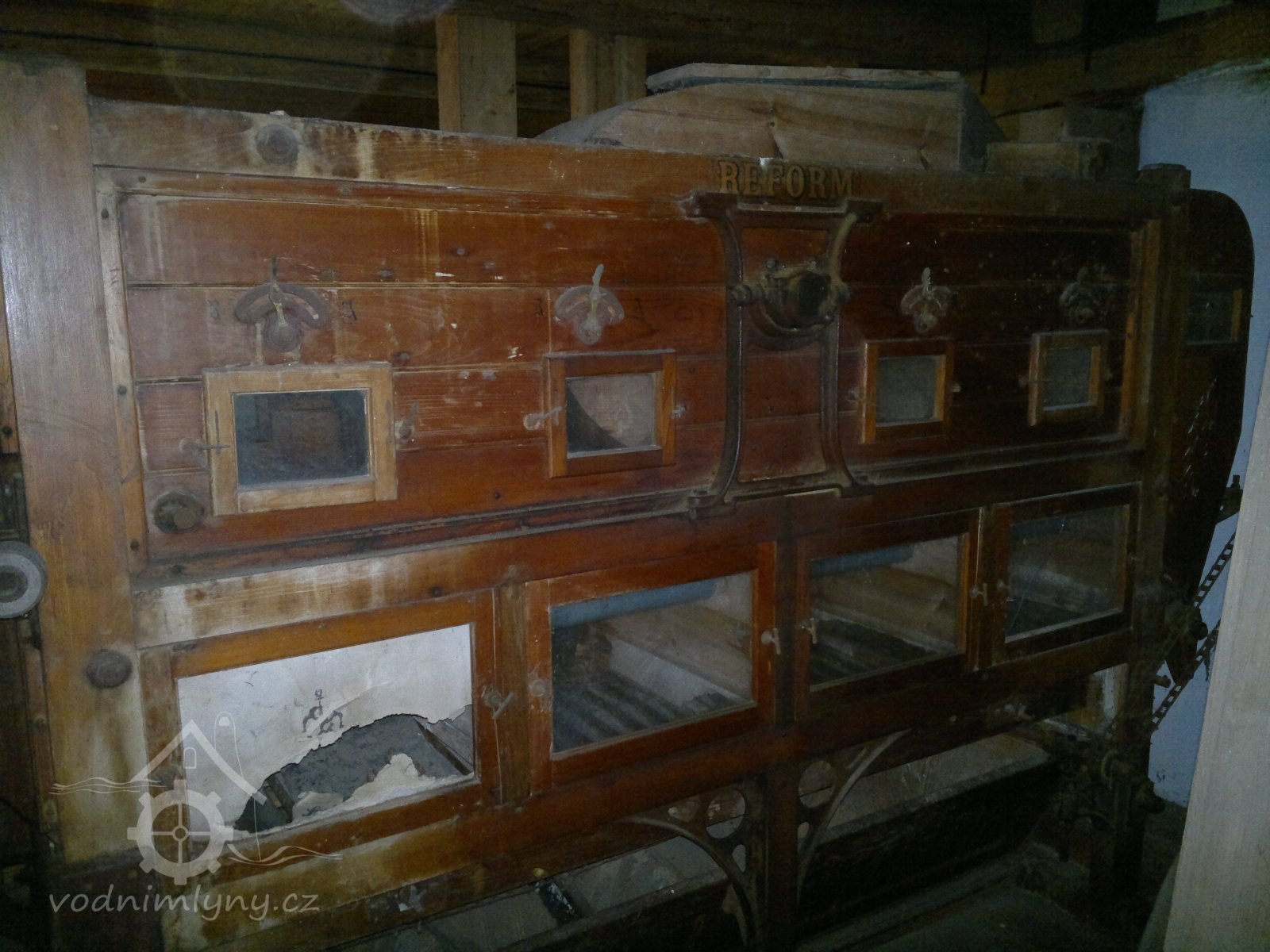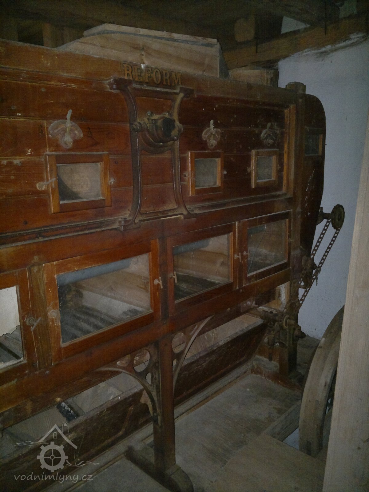Původně zde byla 3 celodřevěná vodní kola na vrchní vodu. Dvě poháněla složení mlýna, třetí stoupu. Později byla stoupa odstraněna a dochoval se jen její fragment (sloupy, kamenný štok). Dřevěné hřídele vodních kol procházejí do podkolí, na nichž jsou dvě paleční kola. Původně roztáčela tzv. obyčejná kamenná mlecí složení, avšak v průběhu modernizace mlýna došlo na začátku 20. stol. k osazení strojního zařízení (umělecké válcové složení). Jedno paleční kolo roztáčelo přes litinový pastorek a řemenici předlohovou transmisi k pohonu dynama a šrotovníku. Druhé paleční kolo též přes pravoúhlý převod za pomoci litinového pastorku, hřídele a řemenice otáčelo hlavní transmisí umístěnou v ložiskách na trámech 1. podlaží. Od transmise byly přes ploché kožené řemeny hnány jednotlivé mlýnské stroje. Zachována původní mlýnská hranice dvojnásobná s dřevěnými sloupy a kamennou dvojicí sloupů vpravo. Datace na kamenném sloupu r. 1796. V podkolí se kromě zmíněného převodového soukolí, mlýnské hranice a stoupy nachází též pytlovací lávka od reformy, elektrorozvodná deska a paty kapsových dopravníků. Stojí zde také vzácně dochovaná moučná truhla, jenž je pravděpodobně pozůstatkem obyčejného složení. Na prvním podlaží nalezneme vzácnou archaickou válcovou mlecí stolici od fa J. Hűbner a K. Opitz - Pardubice z roku 1890 s rýhovanými válci a dřevěnou skříní. Mezi vzácně dochované se řadí i loupačka z počátku 20. stol. od fa J. Prokop – Pardubice, reforma starého sytému na čištění a třídění krupic taktéž z počátku 20. stol., válcová stolice s porcelánovými válci na luštění krupic a dřevěnou skříní od fa Friedrich Wegmann – Zűrich z konce 19. stol., kamenné mlecí složení (stolice Wegmann a kamenné mlecí složení zachráněny před likvidací a převezeny z nedalekého Bělkovského mlýna) a nakonec šrotovník od fa Jindřich Světnička – strojírna na stavby mlýnů Strměchy u Pelhřimova z 20. let 20. stol. K reformě je filtr typu autokap. Všemi podlažími prochází několik kapsových dopravníků. Na druhém podlaží a v podstřeší je umístěn hranolový vysévač moučný s pytlovací lávkou, hranolový předvysévač, čistící stroj, trieur (koukolník), hlavy kapsových dopravníků a horní transmise. Strojní vybavení odpovídá malému vesnickému mlýnu s jednou válcovou stolicí. Zařízení je dochováno ve velmi pěkném stavu nikterak narušené novodobými úpravami. Mlýn se řadí mezi nejvzácněji dochované komplety na území ČR.