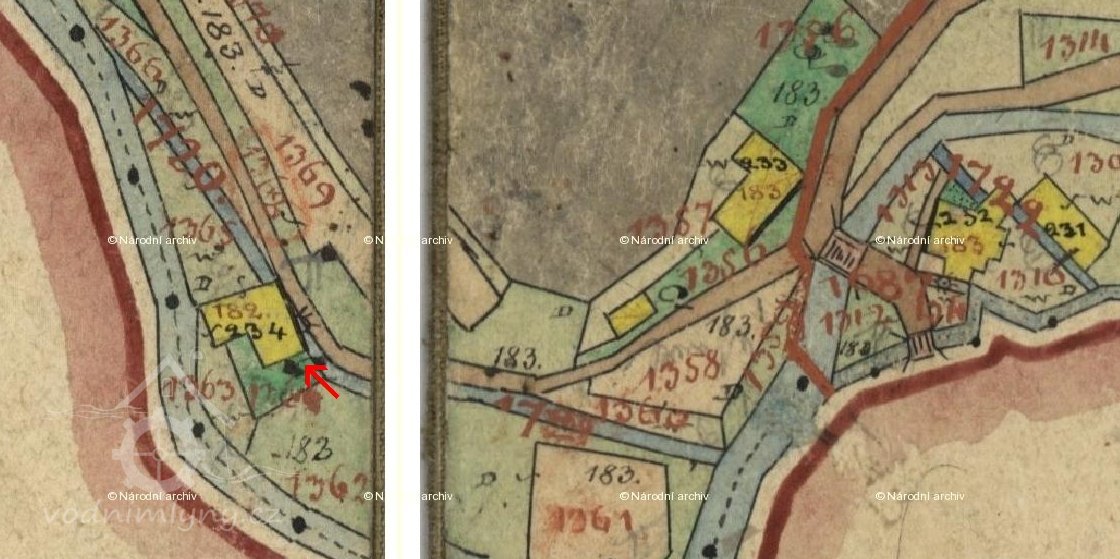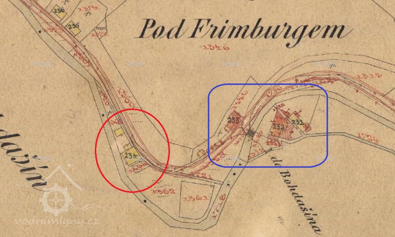 Popis1930: 1 kolo na svrchní vodu, průtok 0,86 m3/s, spád 3,65 m, výkon 2,72 HP