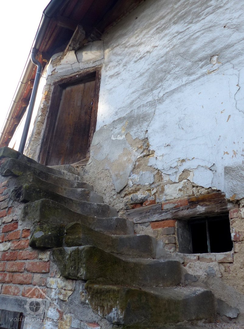 Pod omítkou patrny stopy psaníčkového sgrafita. Na vých. nároží objektu zbytek pískovcového krakorce. Z řady obdélných oken některá zazděna a změněna. Vstup obdélným pískovcovým portálem , po jehož stranách a před nímž zazděny zbytky mlýnských kamenů.