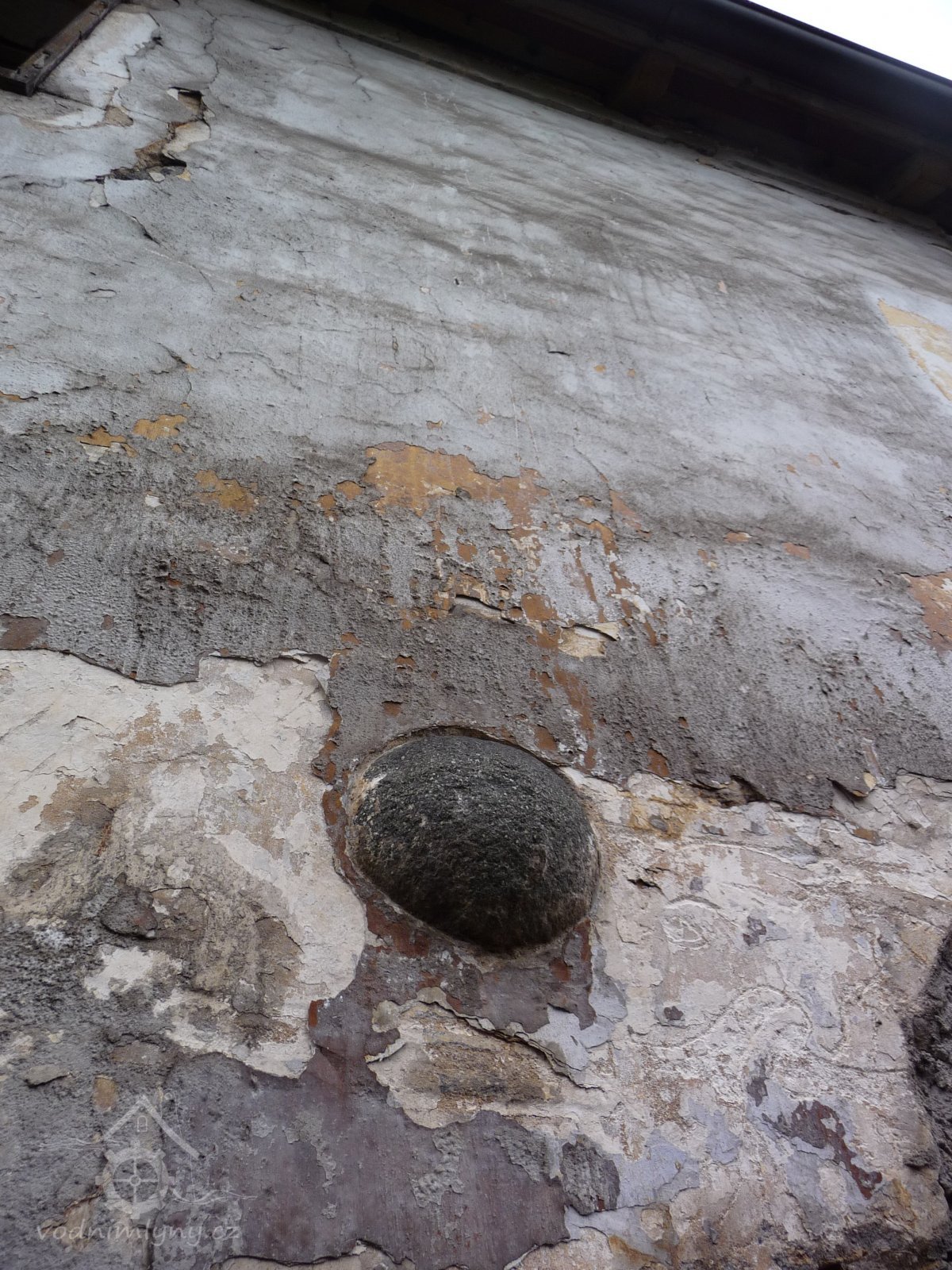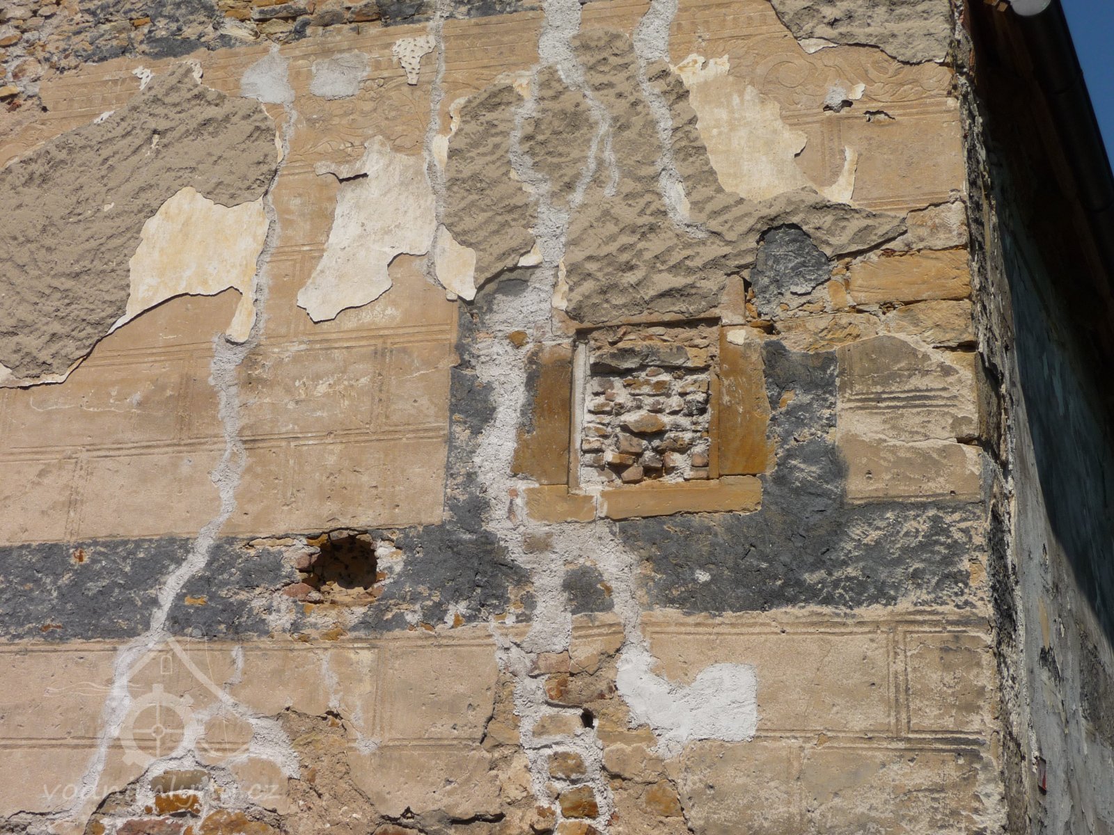 Na východním nároží objektu zbytek pískovcového krakorce.