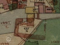 Jedna budova je barokní s reliéfem "Božího oka". Vedle budovy stojí opravená brána.