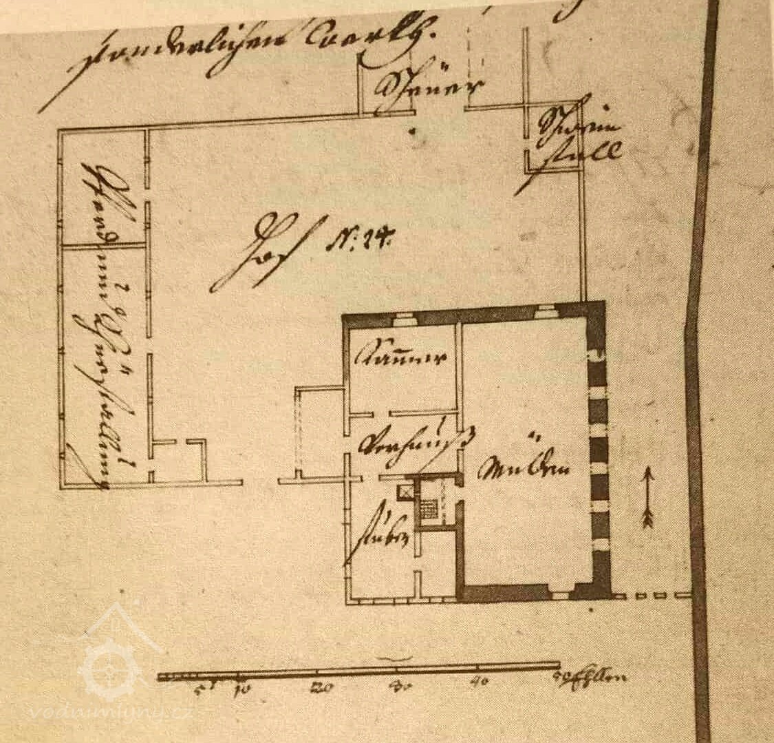 V soupisu mlýnů z roku 1704 jsou uváděna 3 vodní kola, 4 mlecí složení, 1 jahelka a 5 stoup. (RUr)