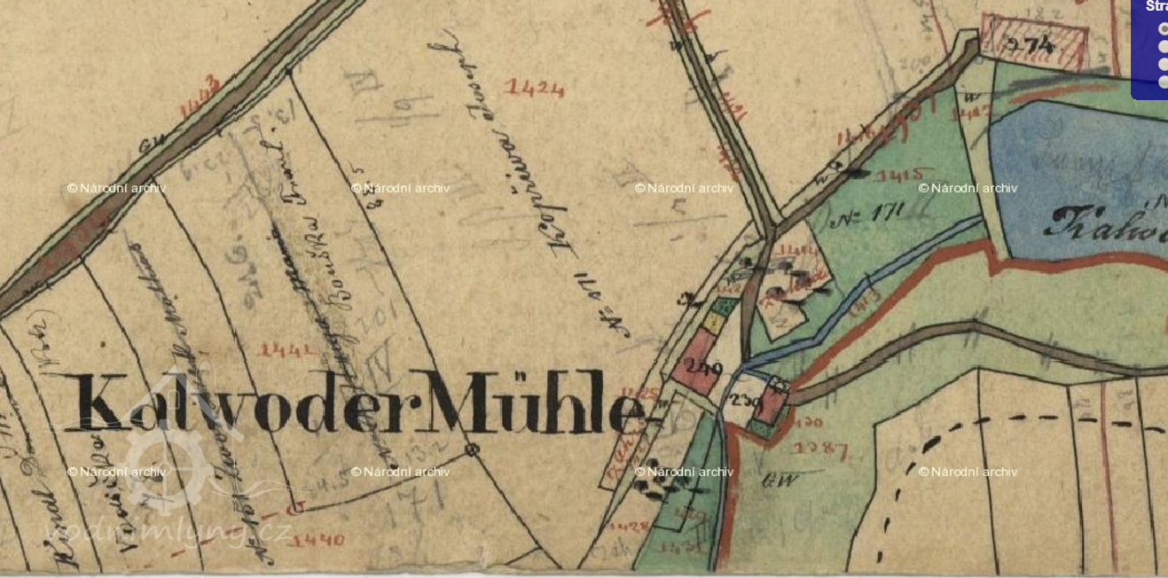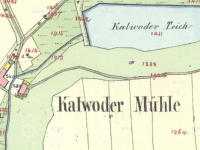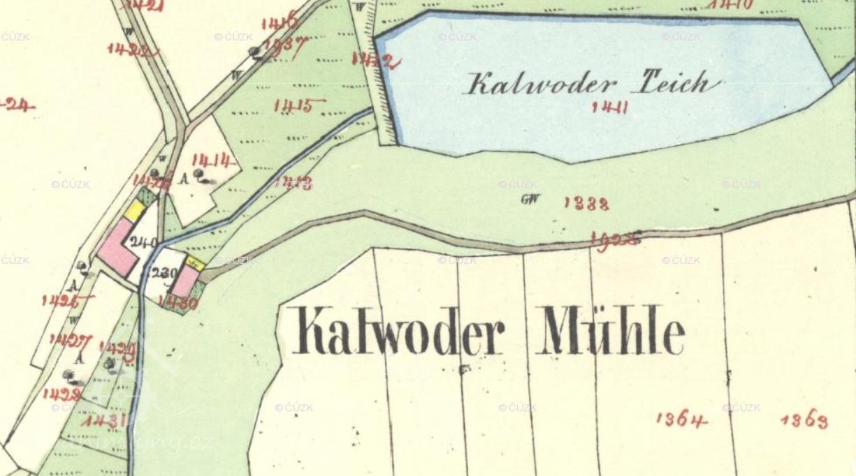 Na mapě II. vojenského mapování jsou zakresleny mlýny dva, druhý Kalvodův mlýn je cca 400 m severovýchodně. Jedná se však evidentně o omyl, jelikož na mapách stabilního katastru, které pocházejí z přibližně stejné doby zde žádný objekt zakreslen není, možná šlo o záměnu s poblíž ležícím Čertovým mlýnem, který 1842 po požáru zaniknul.