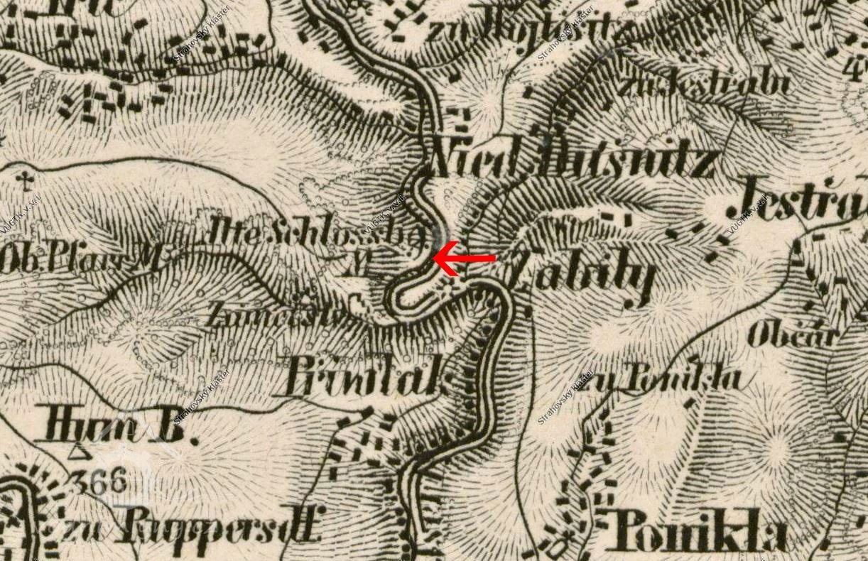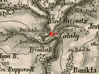 Zaniklý mlýn na náhonu u Jizery, kde si Václav Patočka roku 1775 koupil pozemek ke stavbě mlýnu od hraběte Carretto-Millesimo.