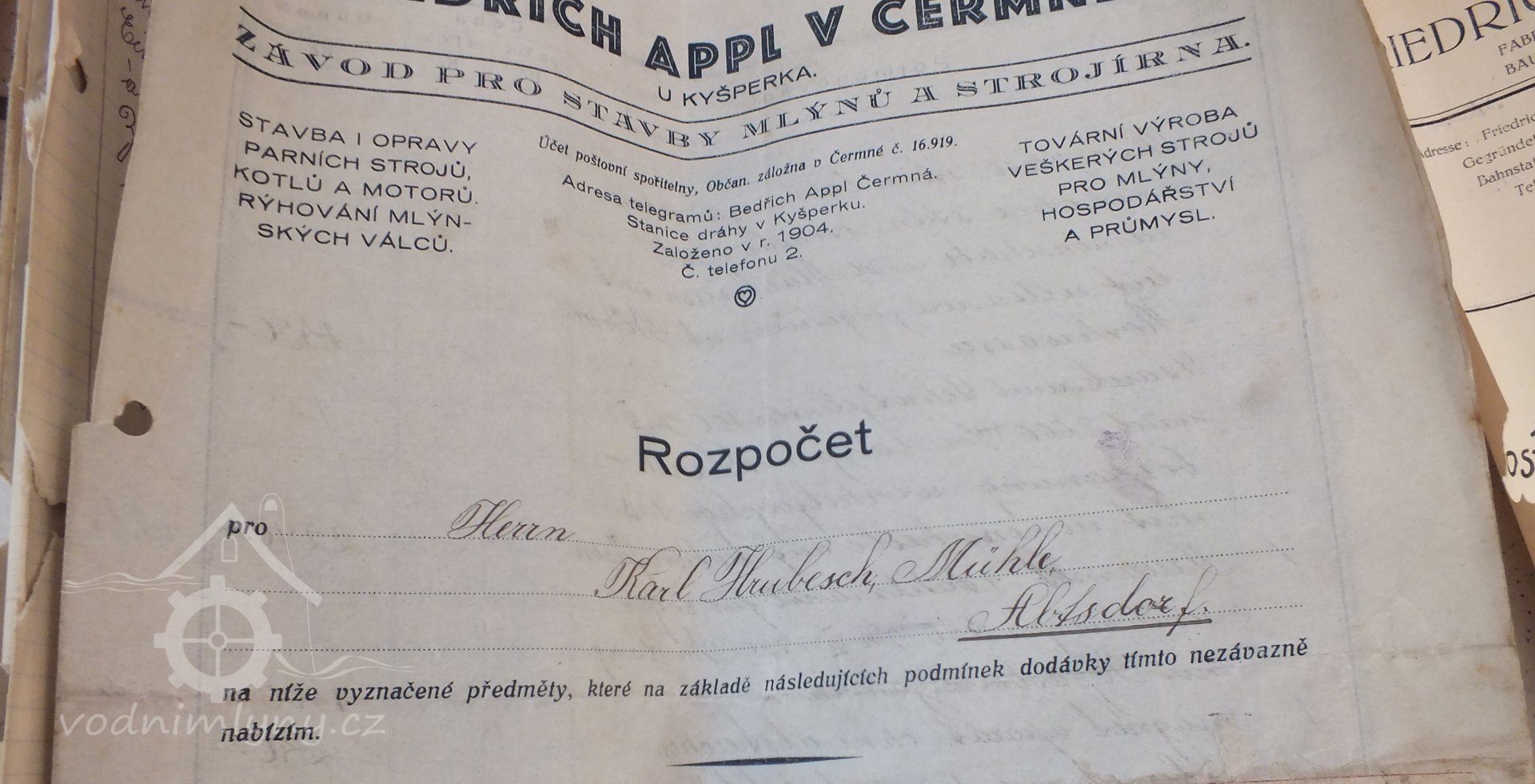 Mlýn vlastnil v r. 1930 Karel Hrubesch. Původní č. p. bylo 56.