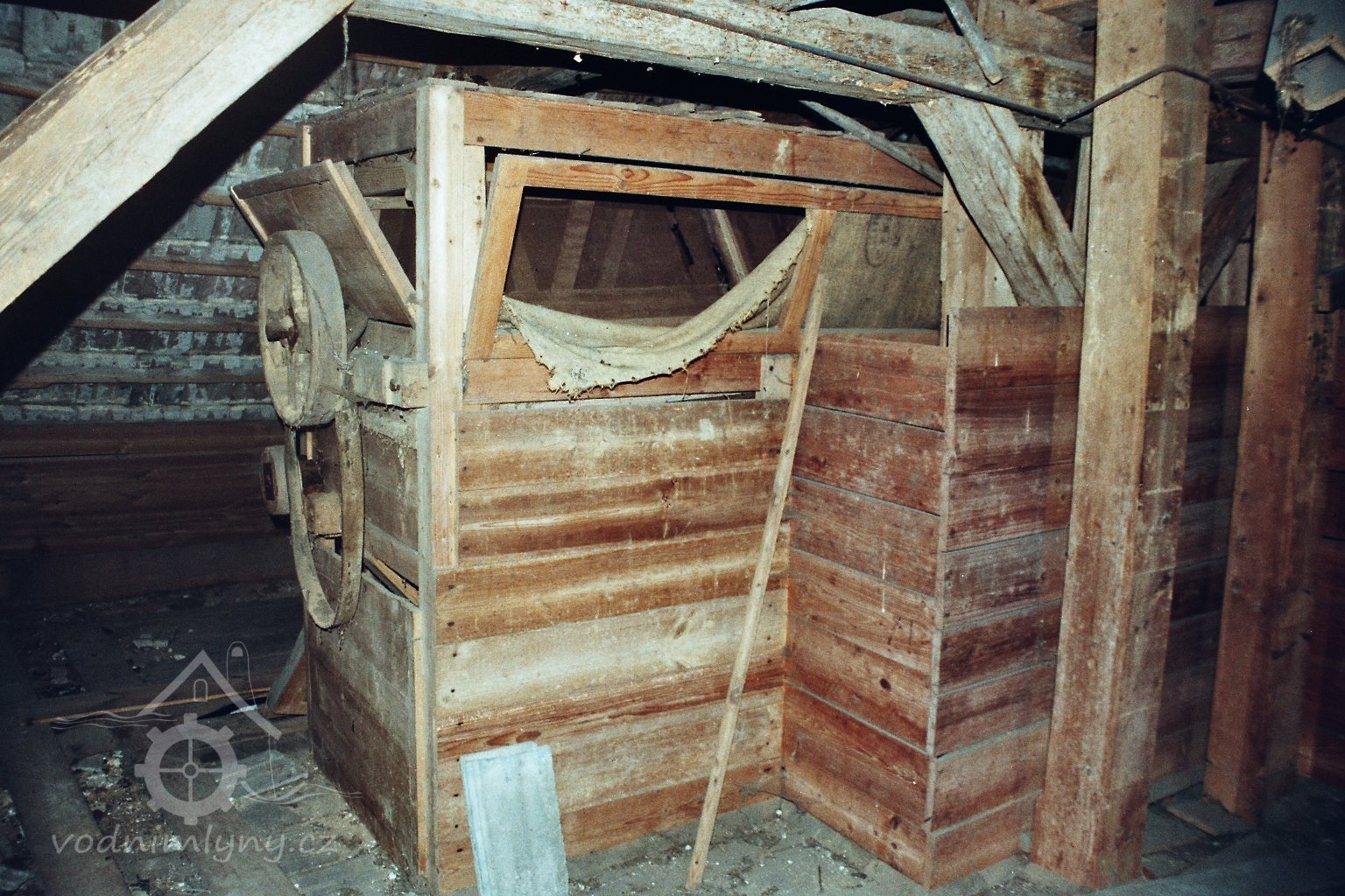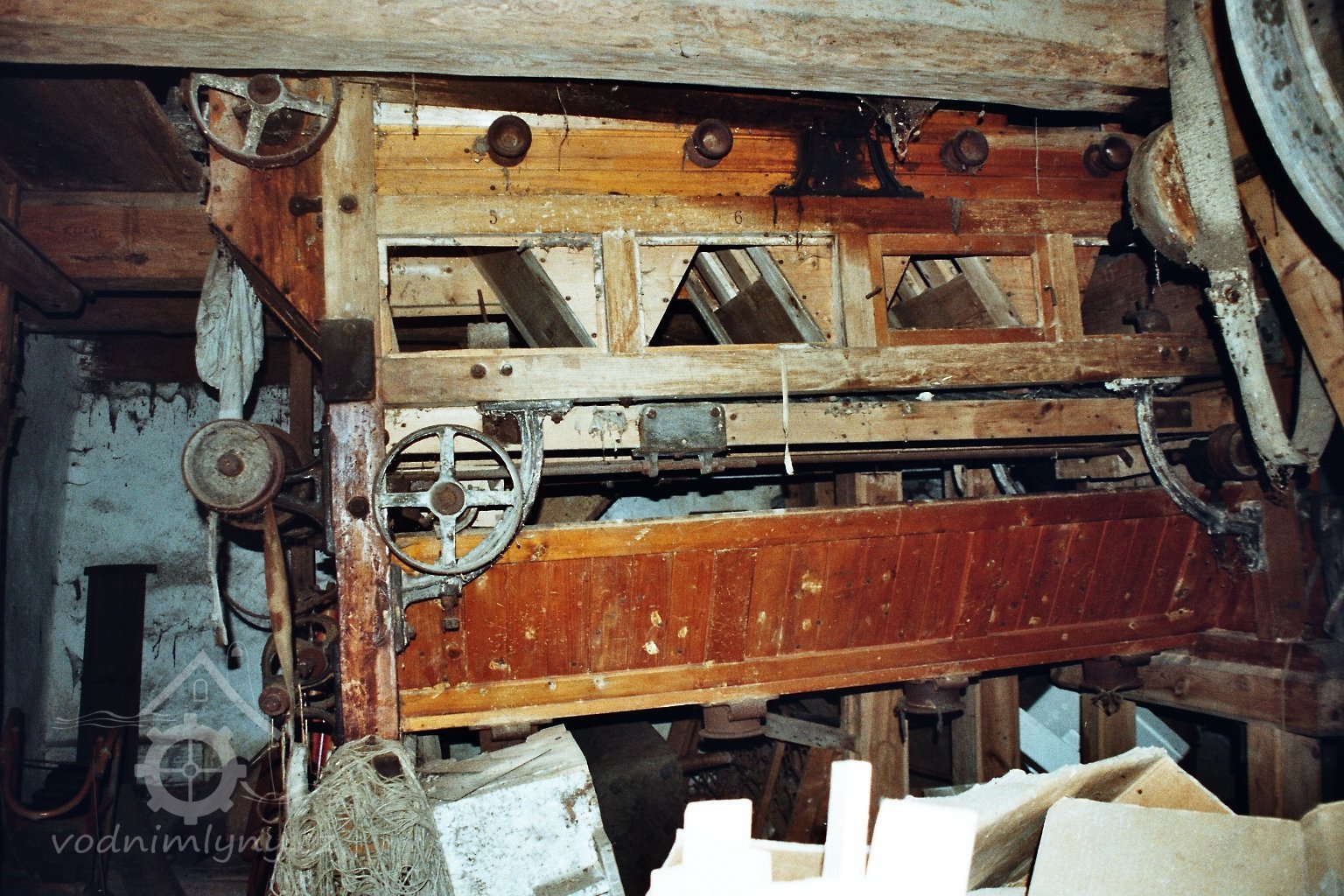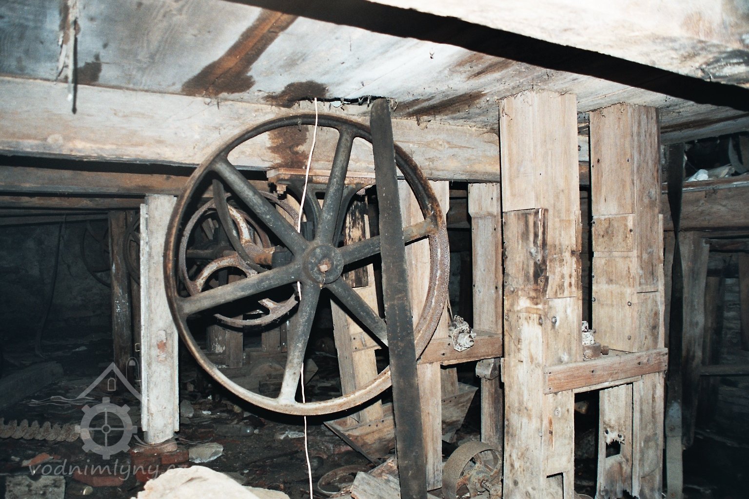 Byl zde hlavní převod, který se sestával z dřevěného palečního kola spojeného hřídelí s vodním kolem, jahož palce zapadaly do litinného pastorku na kovové hřídeli s velkou řemenicí, jenž roztáčela hlavní transmisi uchycenou na stropních trámech na ložiskových věšácích. Na první podlaze se nachází unikátní stolice na tzv. luštění krupic s 4 porcelánovými válci (tuplovka) a taktéž porcelánovými podavacími válečky (!). Stolice byla vyrobena někdy kolem r. 1885, v dřevěné skříni, systém Friedrich Wegmann, Zürich. Vedle ní pak je mlecí stolice s rýhovanými válci taktéž v dřevěné skříni od výrobce Jan Prokopec - Praha Vinohrady z konce 19. stol. Je zde i průchodová loupačka s mechanickým podáváním zrna, mlecí složení francouzké, reforma starého systému, filtr k reformě, pytlovací lávka, malá transmise a moučný hranolový vysévač řemeslné výroby. Na podlaze pod střechou nalezneme hranolový vysévač krupičný, hranolový vysévač čistící, předvysévač, koukolník (triér) a podstřešní transmisi. Všemi patry prochází několik kapsových dopravníků.