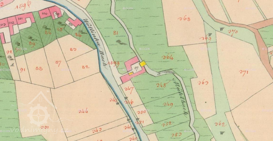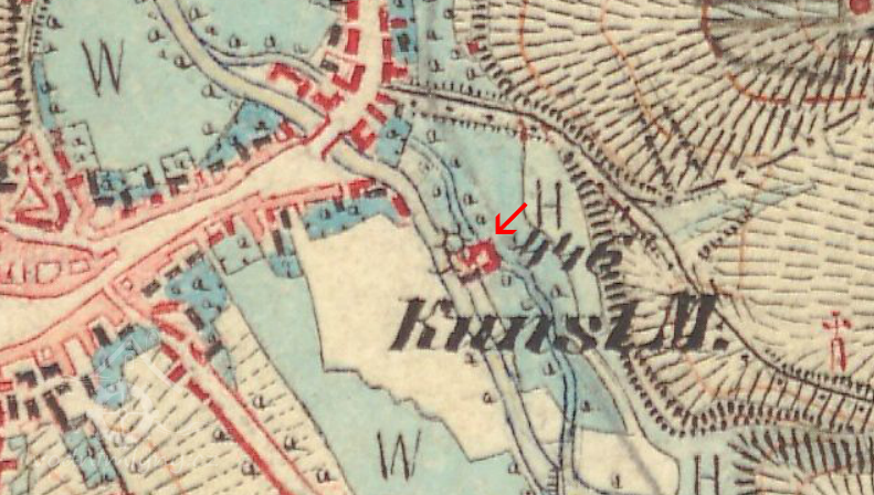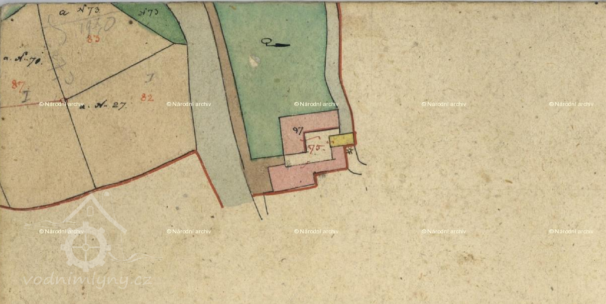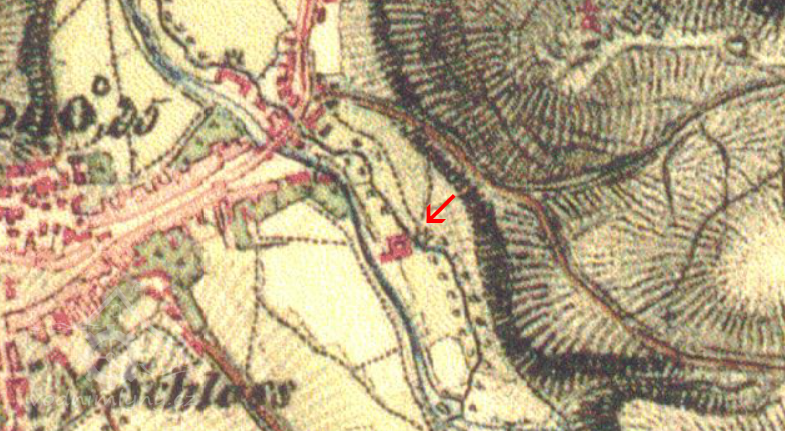 Mlýn na jehož místě později vznikla slavná továrna rodiny Minibergerovy.