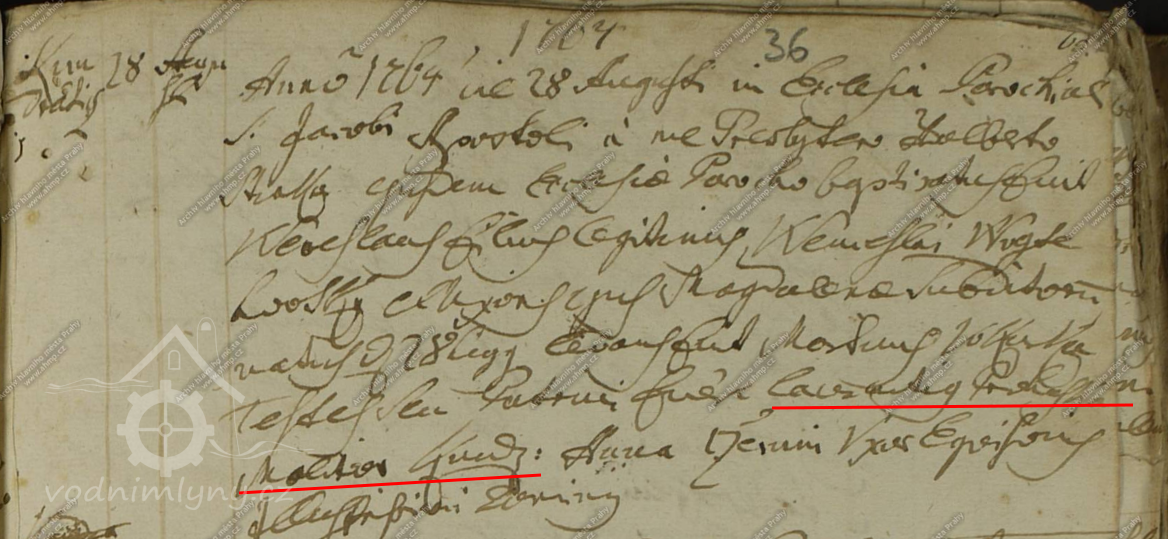 1764 - Laurentij (Vavřinec) Prochaska, mlynář kunratický jako kmotr. (RR)
