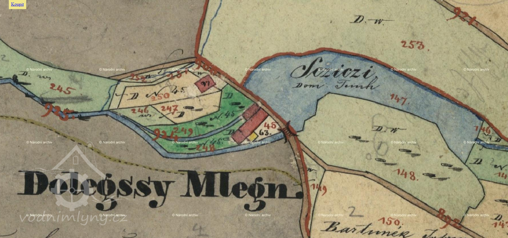 16.4.1825 koupil Václav Jech za 1800 zl. s mlynářským nářadím za 200 zl.