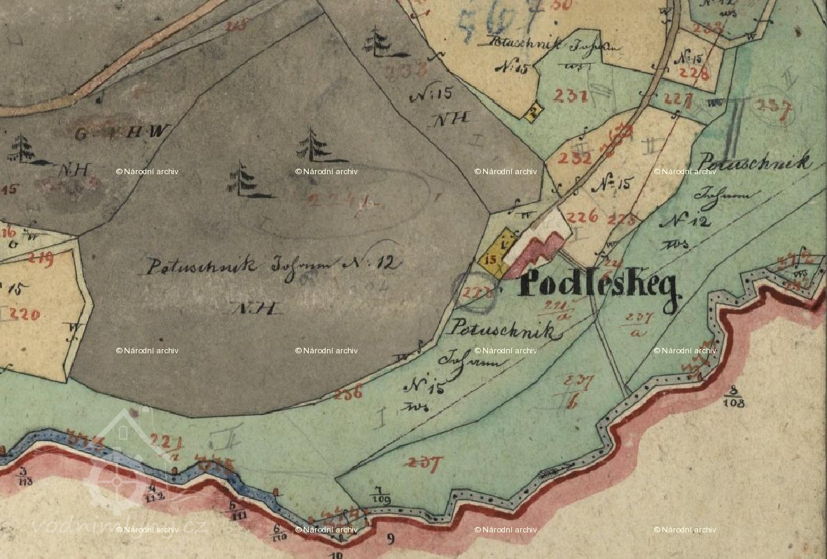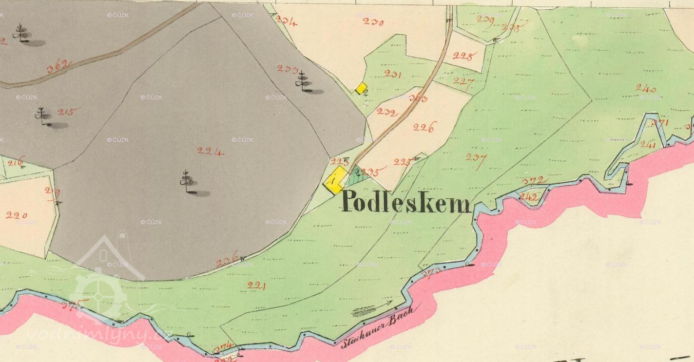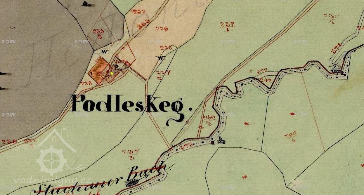 V roce 1837 je majitelem objektu Potužník Johan, v té době však objekt ještě nedisponoval vodním motorem.