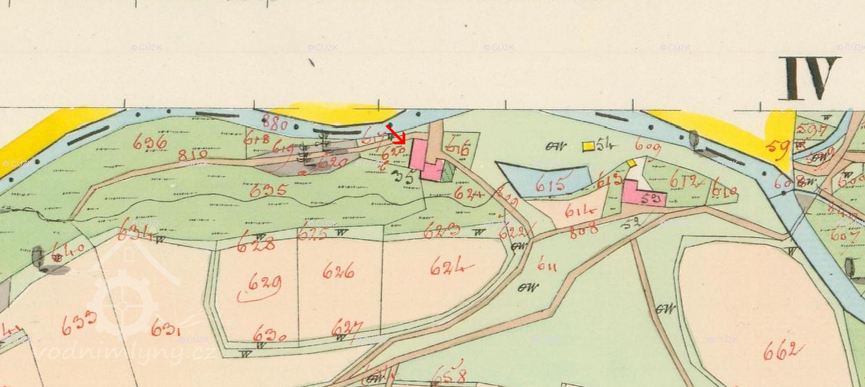 Na IS je ke stojící budově hospody dodatečně dokreslena mlýnice.