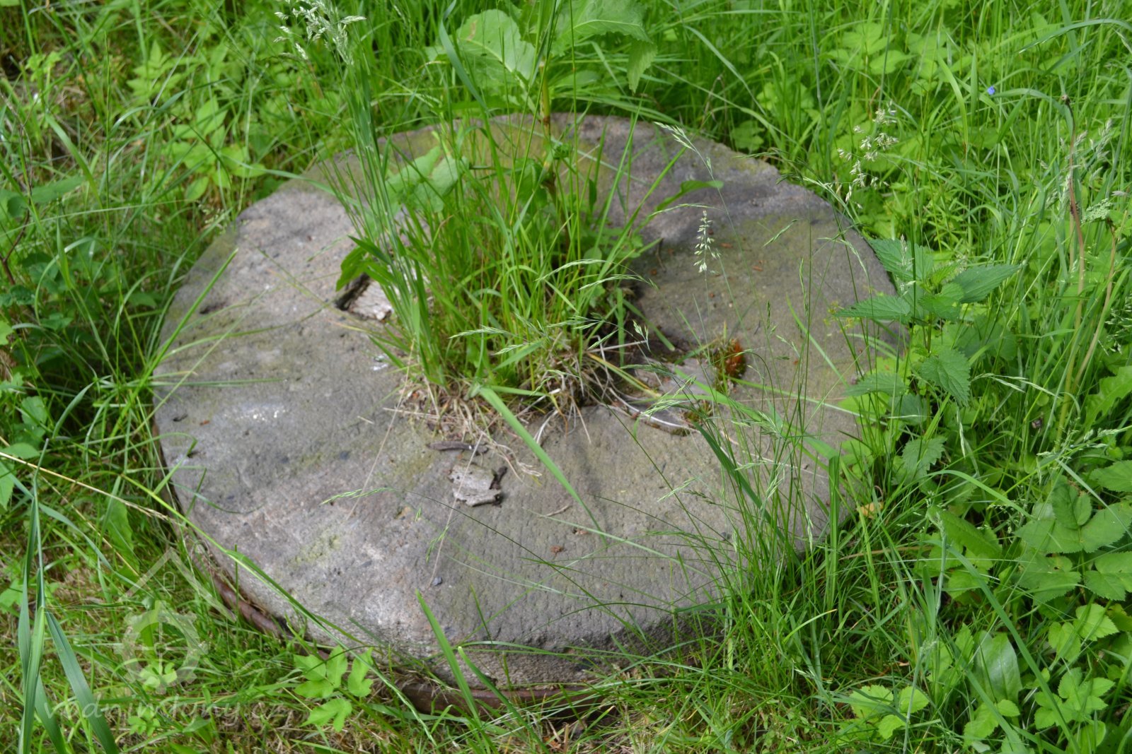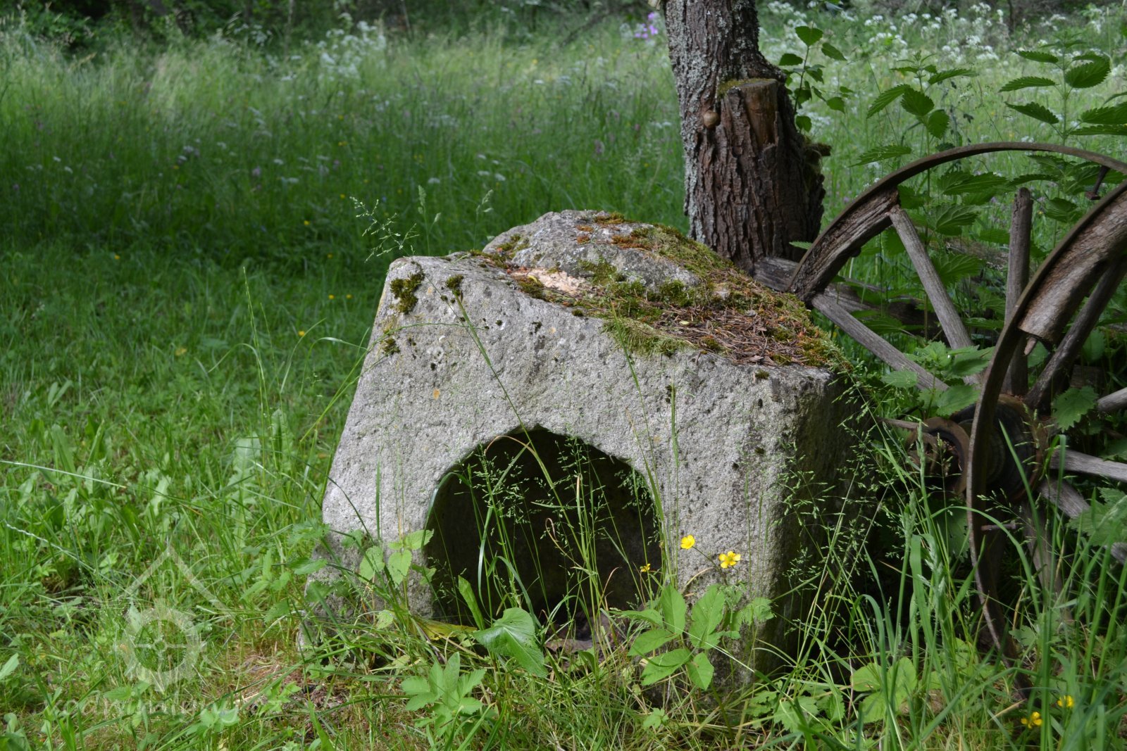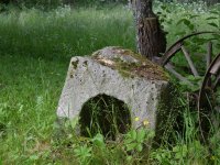 U mlýna se dochoval kamenný štok kladivové stoupy.