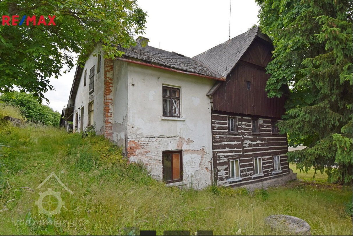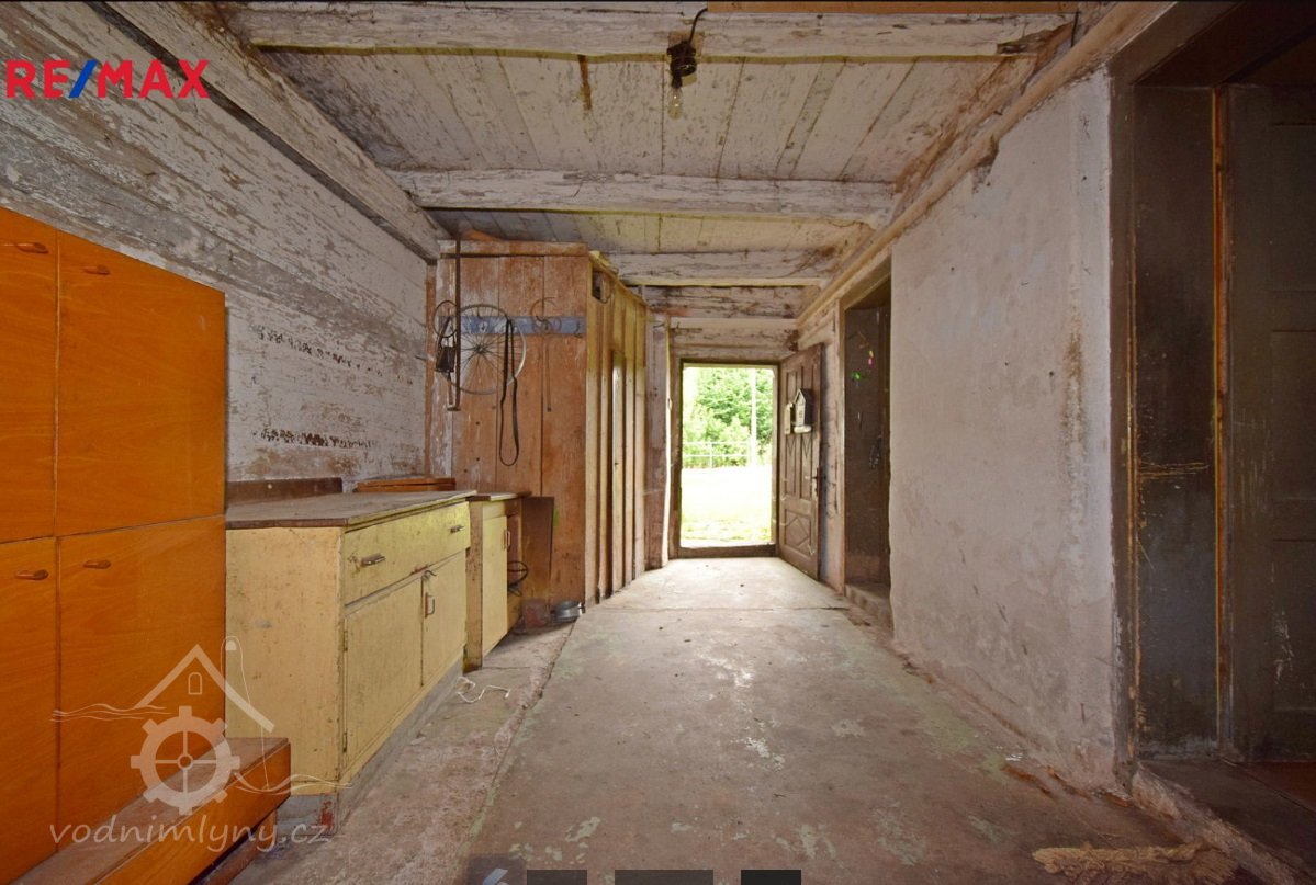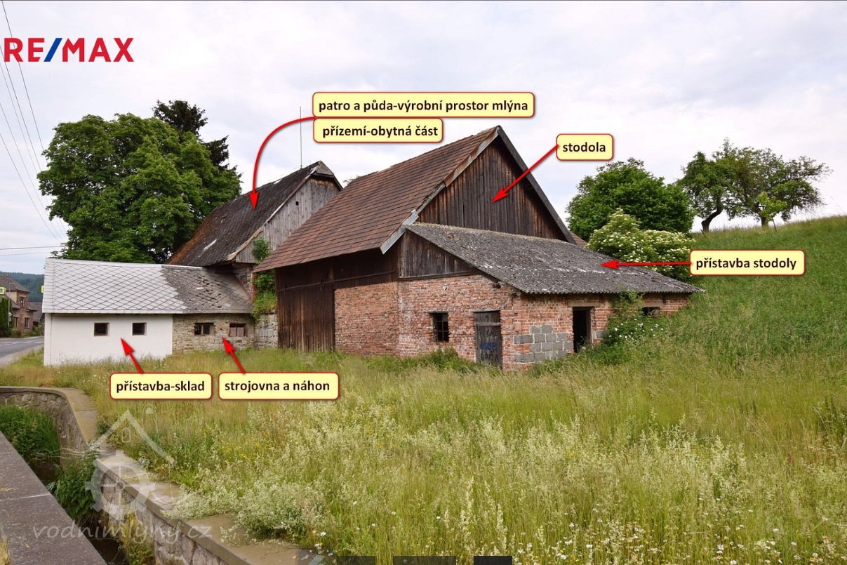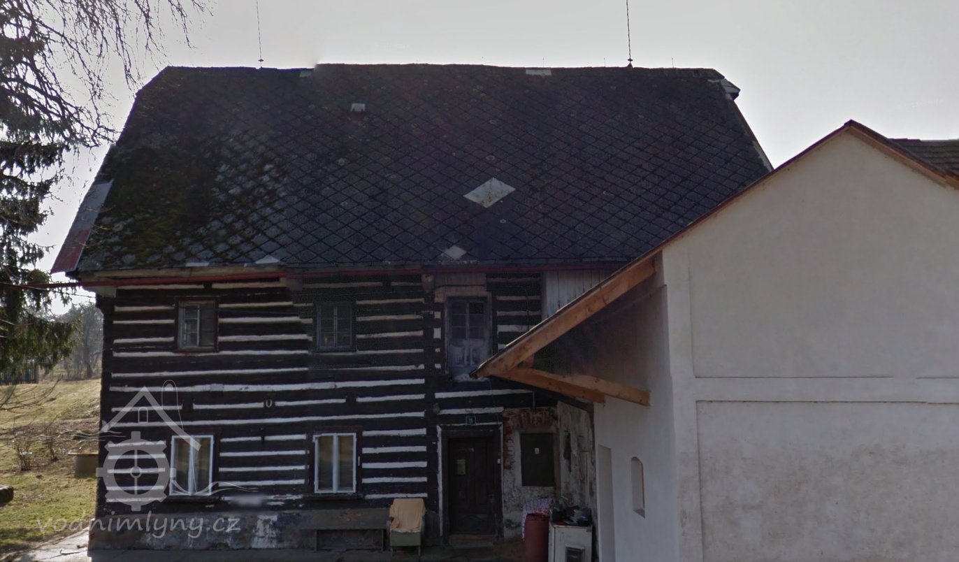 Roubené jednopatrové budova, v přízemí obytné světnice 3, v patře mlýnice dnes vybavena dvěma válcovými stolicemi. Původní mlýn 3 mlýnskými kameny zrušen r. 1942 a celé patro přestavěno. Původní zůstaly čelní a pravá strana. Zařízení mlýna slouží od r. 1953 JZD jako šrotovna. Na levé straně nový patrový přístavek výměnku. Na pravé straně stranou vchodu přístavek, přízemní budova sloužící jako chlévek a komora. Vzadu stodola. Stropy v patrové části roubeného stavení dřevěné (trámy, prkna ).
