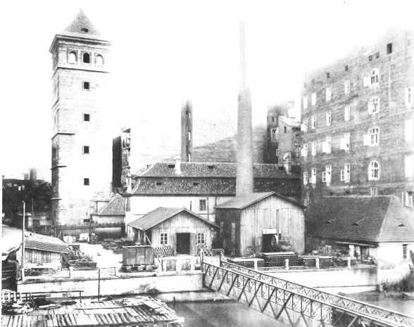 čp. 1244 obytná budova, 1874 zakoupena pražskou obcí, která zde zřídila kancelář vodárny a stanici ku zkoušení vodoměrů