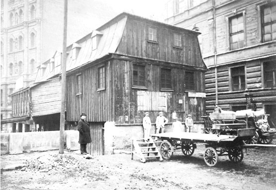 1947-51 při úpravě terénu na předmostí Švermova (dnes Štefánikova mostu) zbořeny sousední domy, Vávrův dům pro vzácnou uměleckou výzdovu ponechán