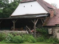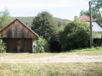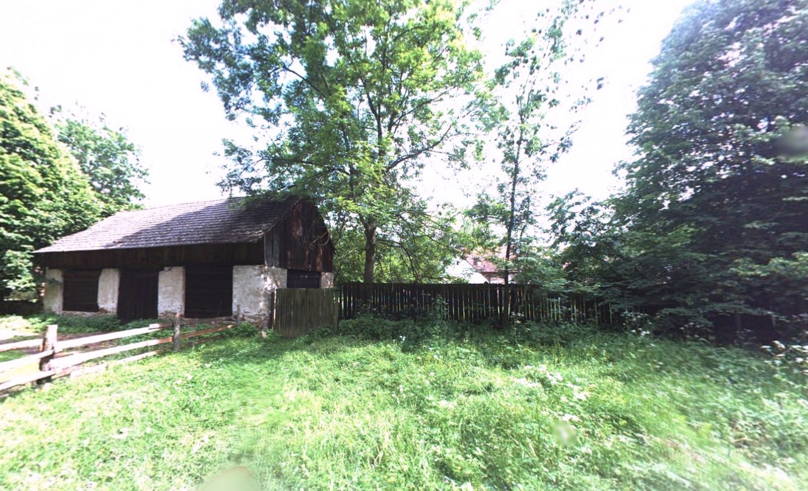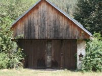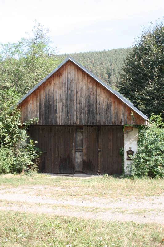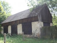 Samostatně stojící příčně průjezdná stodola doplňuje areál a společně s objekty chlévů a maštalí pro dobytek dokládají podobu hospodářské části areálu vodního mlýna z počátku 19. století.