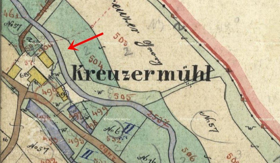 U zříceniny Kreuzerova mlýna se měly ještě v roce 2003 nacházet zbytky kola.