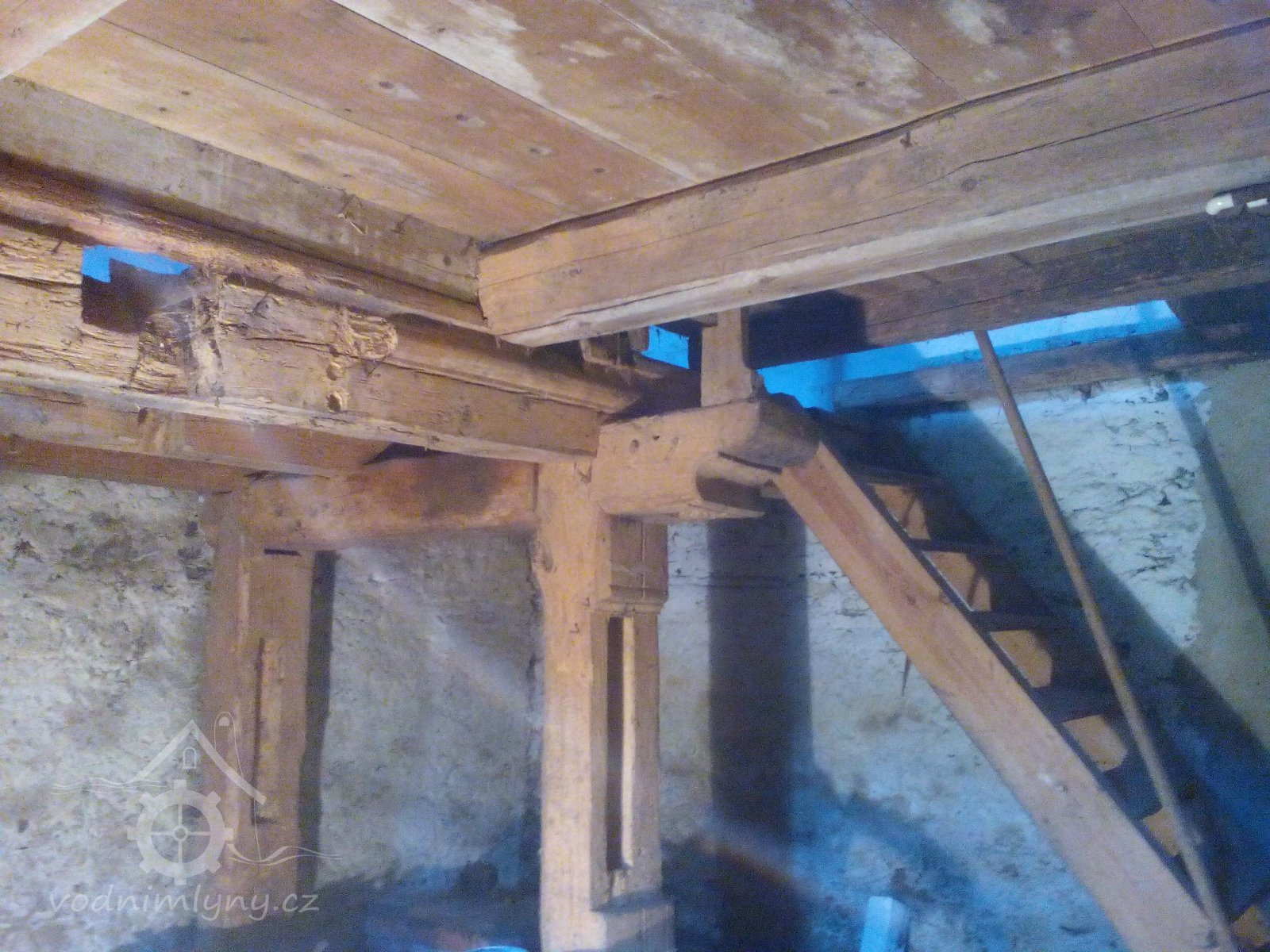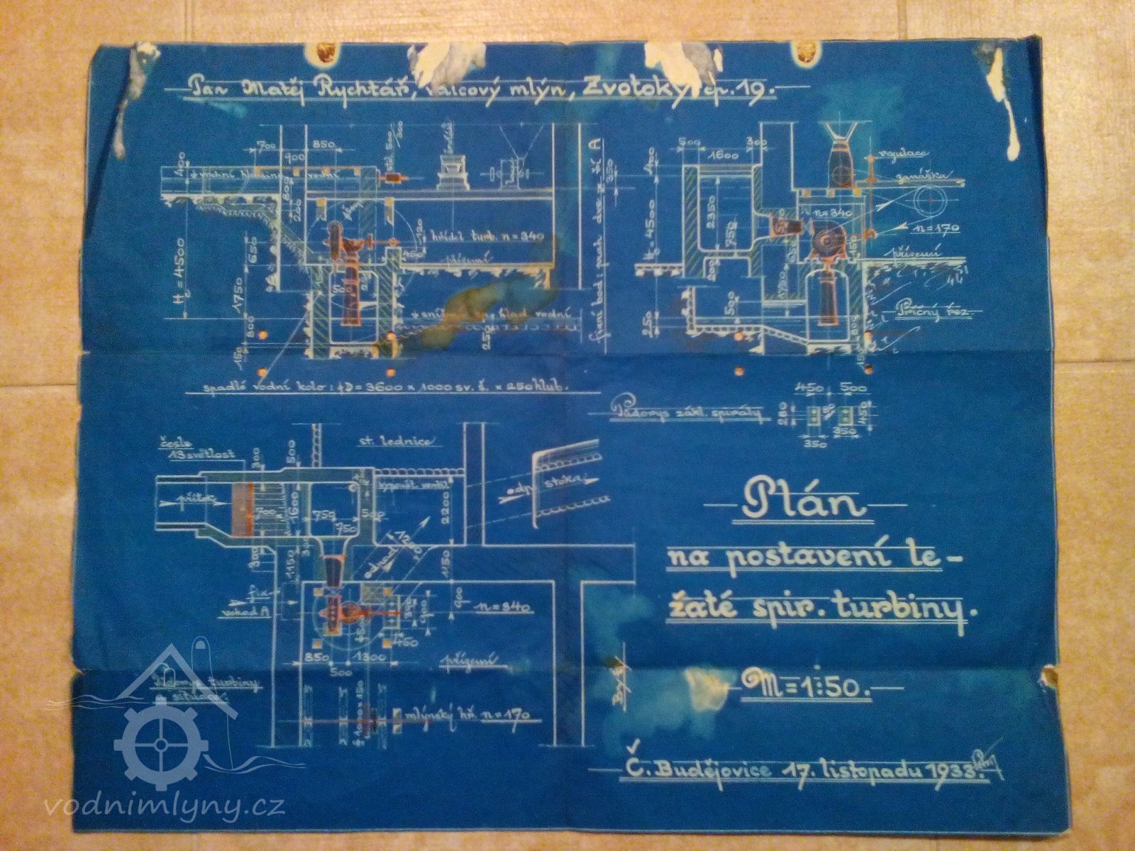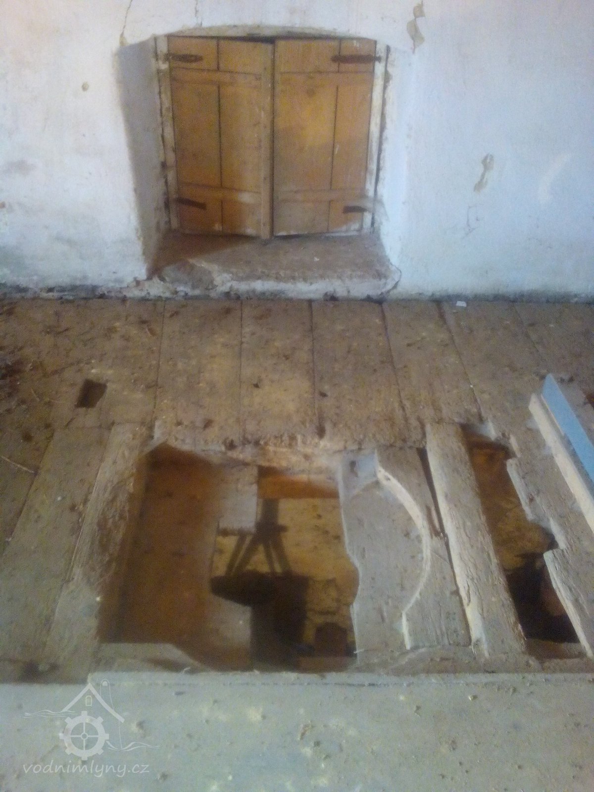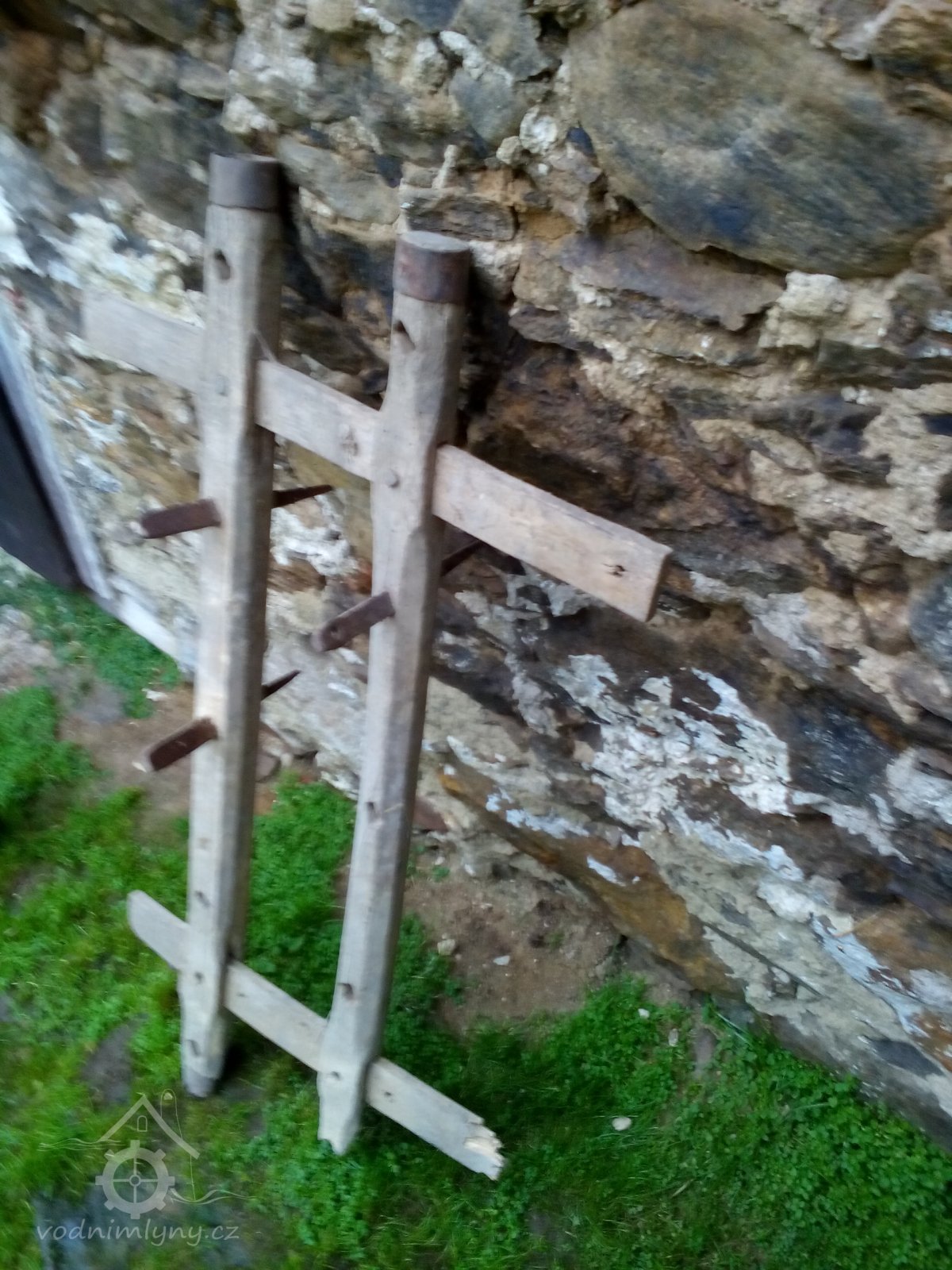 Voda z potoka zdýmá se pevným 210m dlouhým jezem do náhonu, který při svém odbočení z potoka opatřen jest vpouštěcím stavidlem o šířce 0,82m. V mlýnských vantrokách 1,15m širokých dvě stavidla. Pravé: 0,45m široké a 0,33m vysoké. Levé 0,47m široké a 0,33m vysoké.