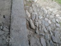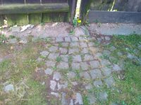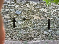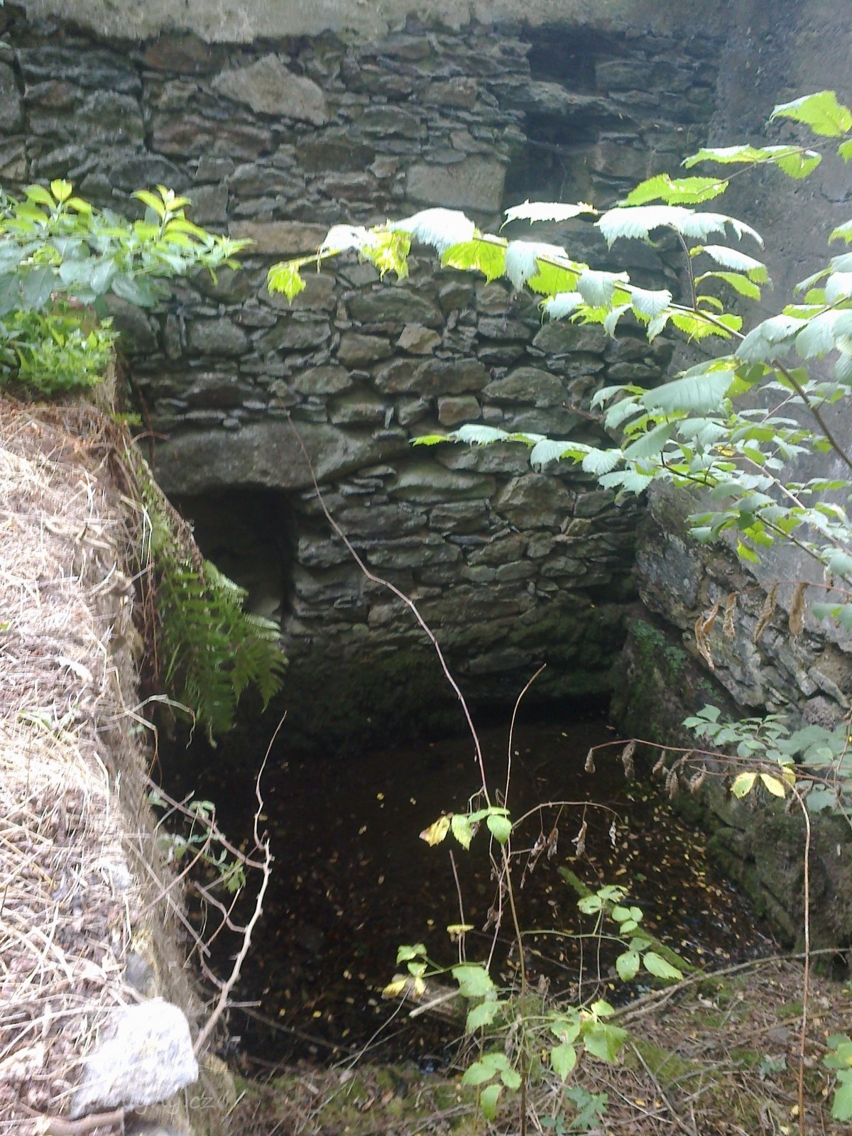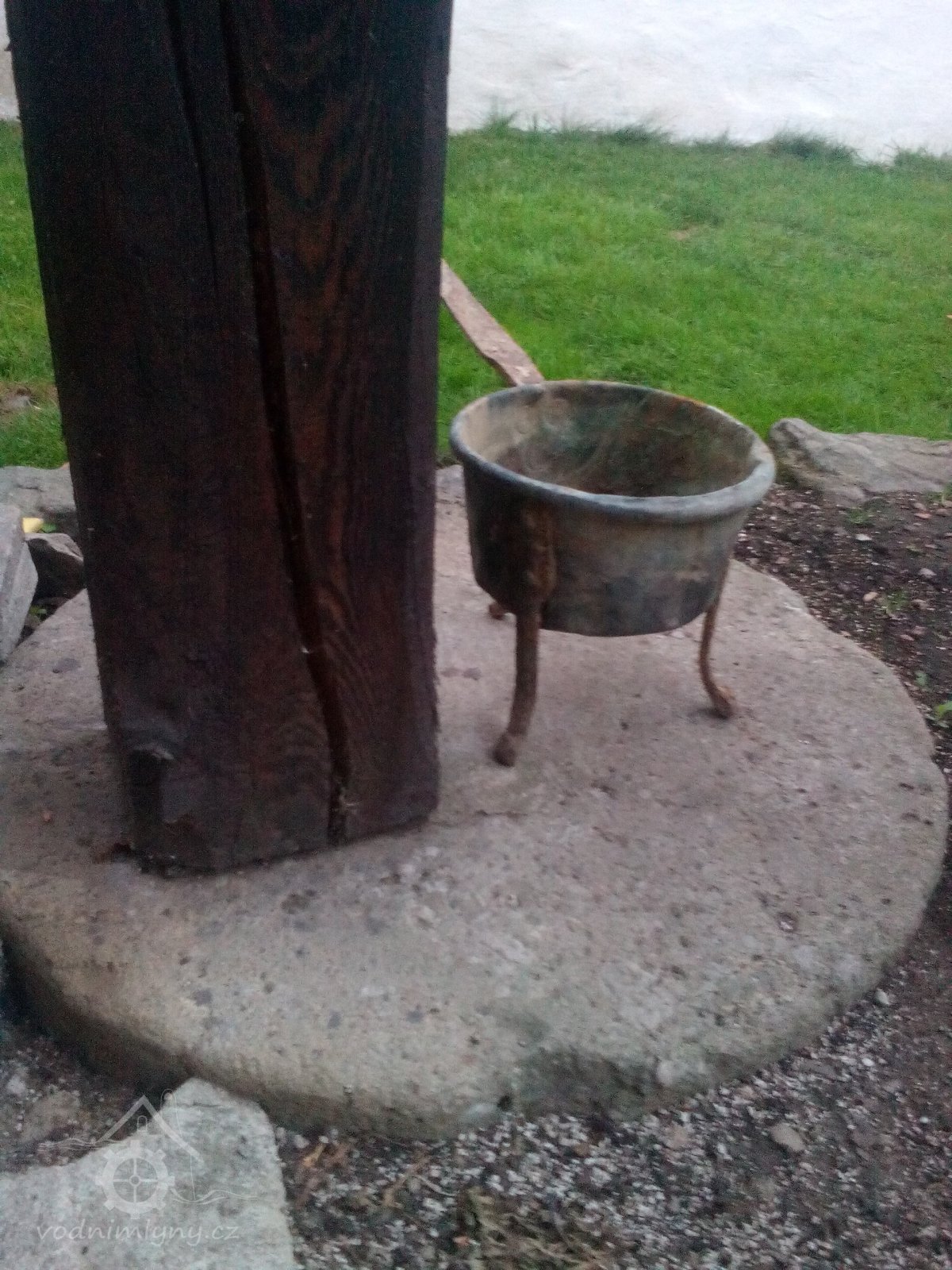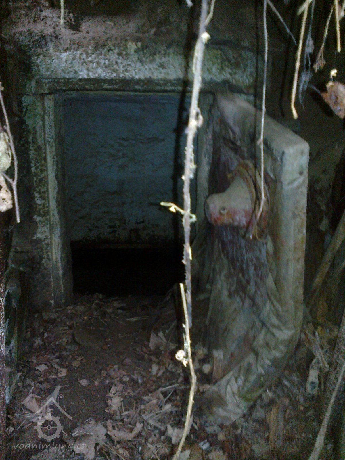 Betonová přístavba na kamenných vantrokách pravděpodobně z 19. stol za účelem vytvoření turbínové kašny.