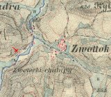 První zmínka o mlýnu pochází z roku 1388. V listině uložené v archivu Pražského hradu jsou zmíněny odvody z platů ze vsi Zvotoky a tří mlýnů pod vsí. Obytné stavení s uzavřeným dvorem a čtyřpodlažní mlýnicí.