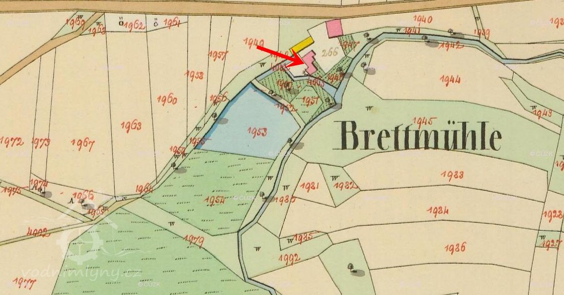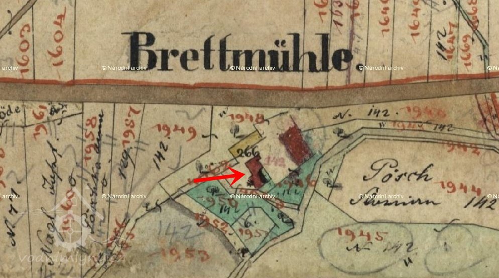 Mlýn čp. 142 je uveden na Seznamu a mapě vodních děl k roku 1930, mlynář – Julius Pösch.
