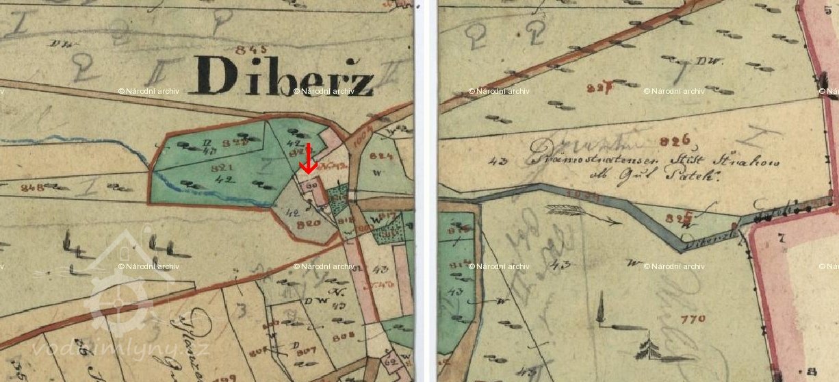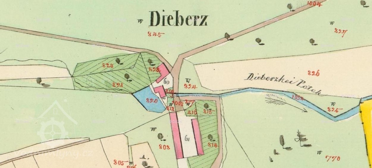 Jakožto Débeřský mlýn je dnes označován statek s pěkným barokním štítem, skutečný mlýn však stával cca 30 m před jeho průčelím a dnes je již zaniklý.