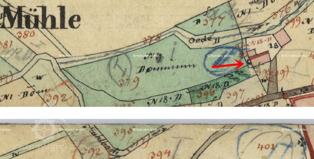 PopisV roce 1930 zde bylo vodní kolo na vrchní vodu o hltnosti 76 l/s, na spádu 6,8 m a výkonu 4,15 HP.