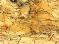 1833-1874 Jan Rippl, 1833 nechal zhotovit nad horním polem pískovcovou sochu Nejsv. Trojice s olejovým obrázkem P. Marie a zavázal své pomníky něj pečovat.