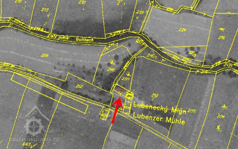 Roku 1654 se mlýn v Lubenci uvádí jako pustý o dvou staveních, ale jen jednom kole moučném. Majitelem mlýna byl v té době Bartoloměj Gregl.