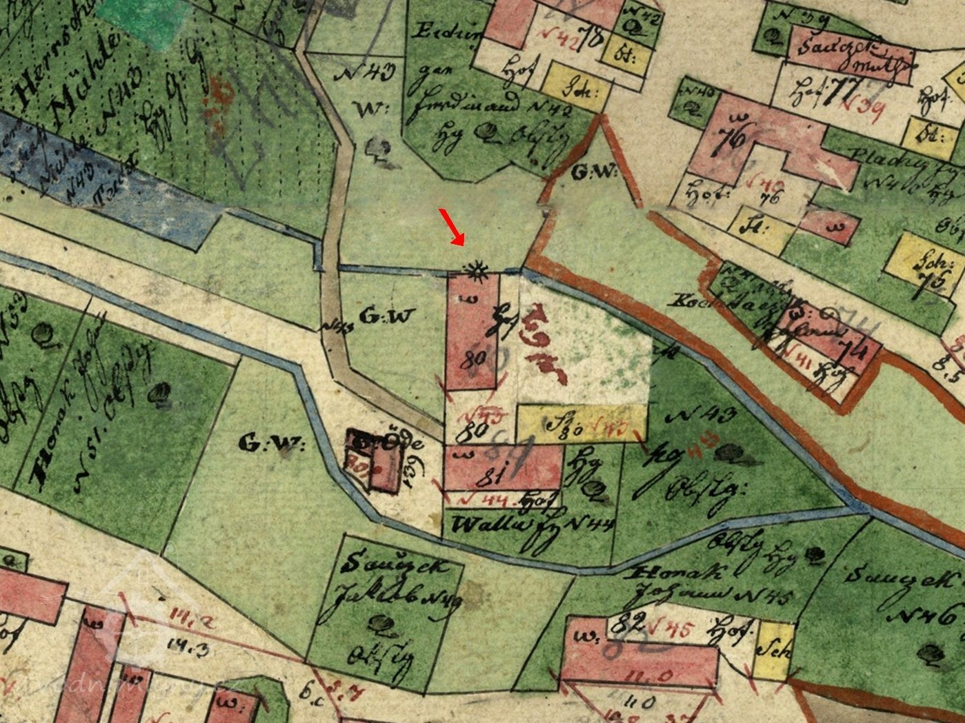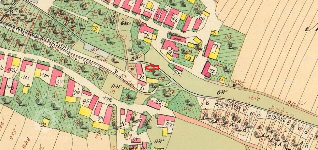 Budova bývalého malého mlýna na již zaniklém náhonu Našiměřického potoka. Původně č. p. 43.