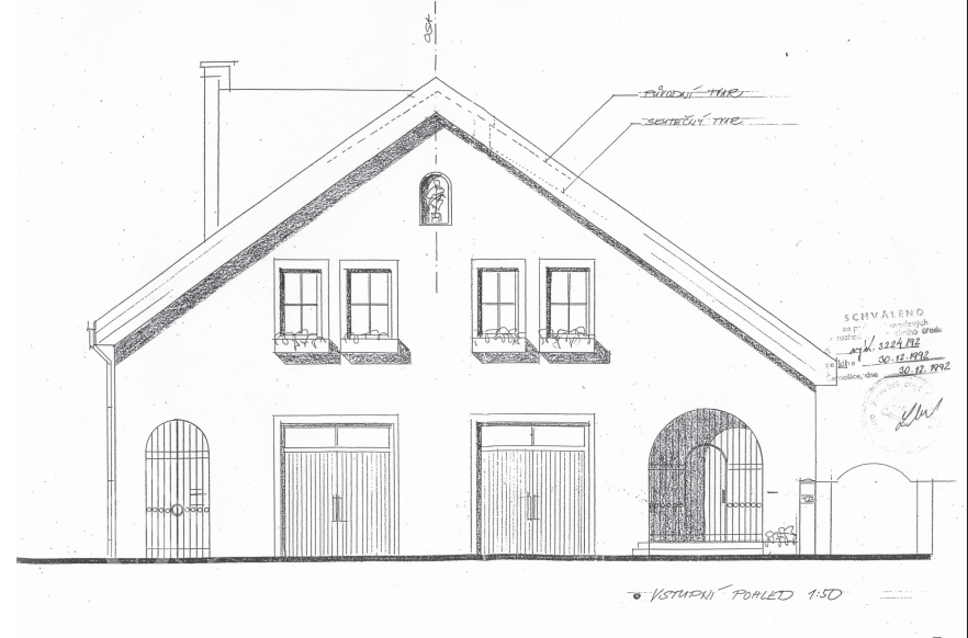 Na štítu mlýna latinský letopočetný nápis „V ROCE,V NĚMŽ BYL ZBOŘEN I VYSTAVĚN“