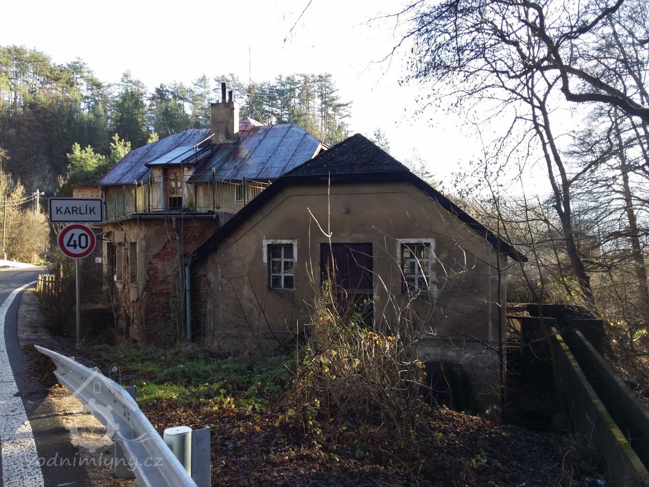 Mlýn je posledním stavením obce Karlík, katastrem však původně náležel pod Mořinku. Mlýn je starého založení, údajně za Karla IV., uváděn je v polovině 16. století. V roce 1927 byl mlýn přestavěn a opatřen turbínou. Nyní je mlýn zchátralý.