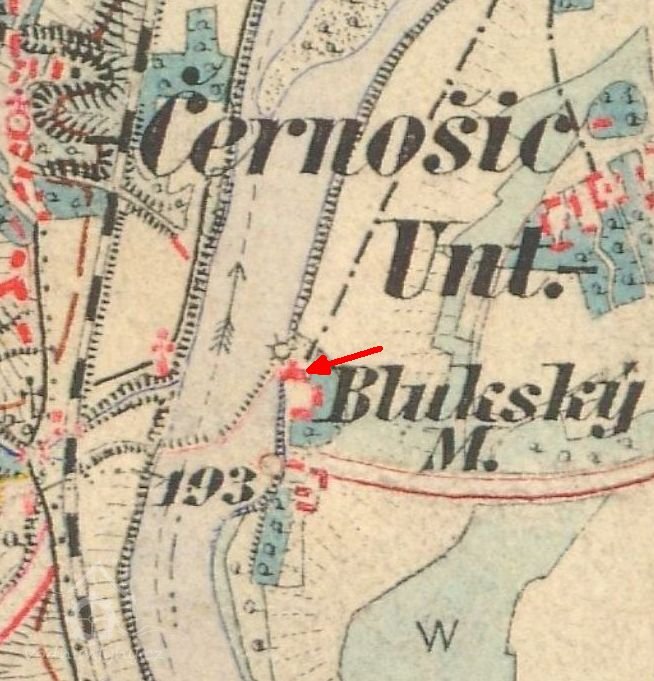 V roce 1774 Jiří Kotaška, mlynář z černošického, blukského mlýna přispěl na přestavbu černošického kostela do nynější podoby.