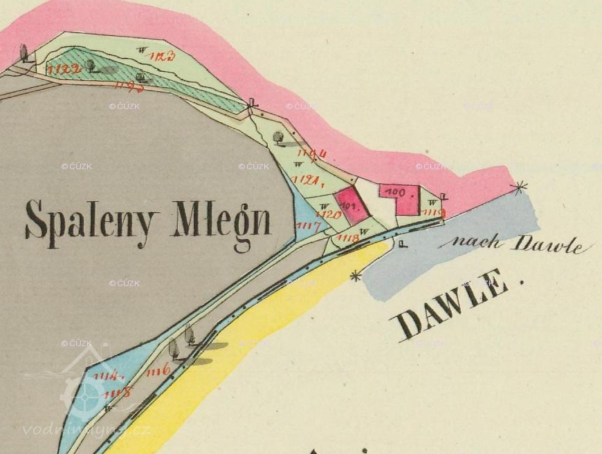 PopisV r. 1930 zde bylo 1 kolo na svrchní vodu, průtok 0,122 m3/s, spád 4,4 m, výkon 4,65 k.